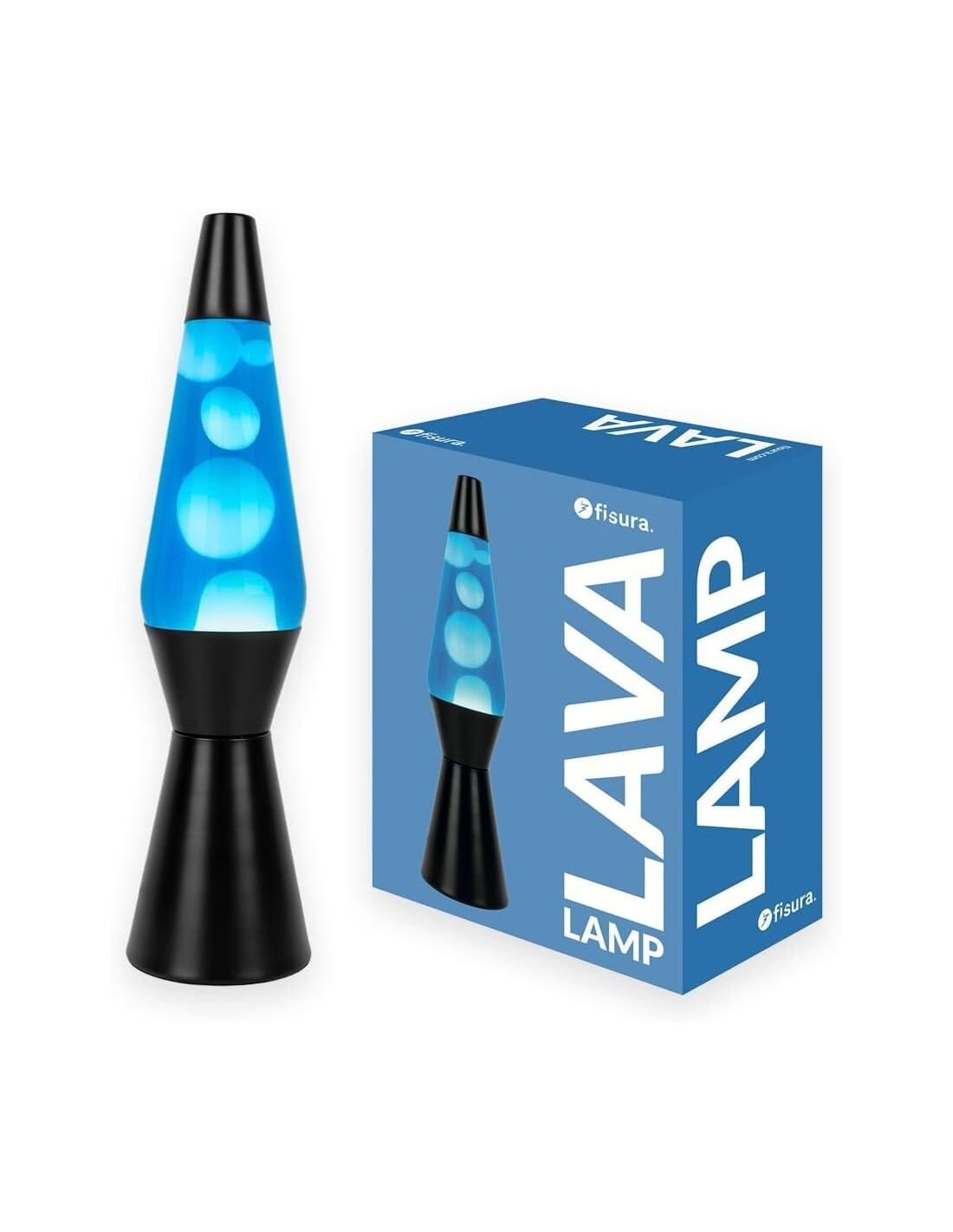 Fisura Lampada Lava Blu e Nera Base Nera Lava Bianca e Liquido Blu Retrò