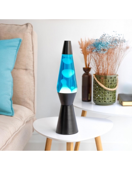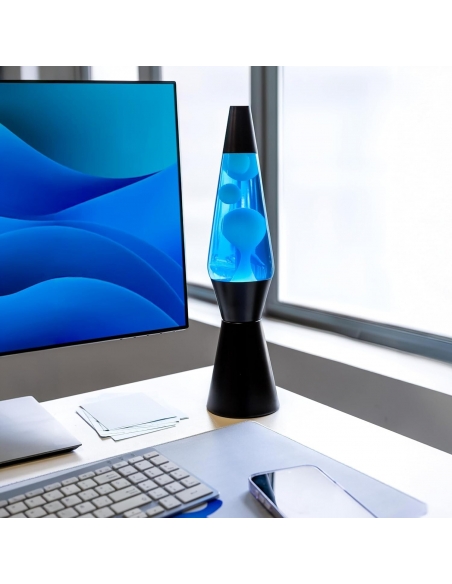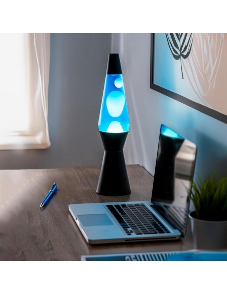 - Trasforma la tua casa in un'oasi di pace con questa lampada lava con base nera e lava blu. L'eleganza del nero unita alla calma del blu creerà un angolo perfetto di serenità e armonia in qualsiasi parte della tua casa.