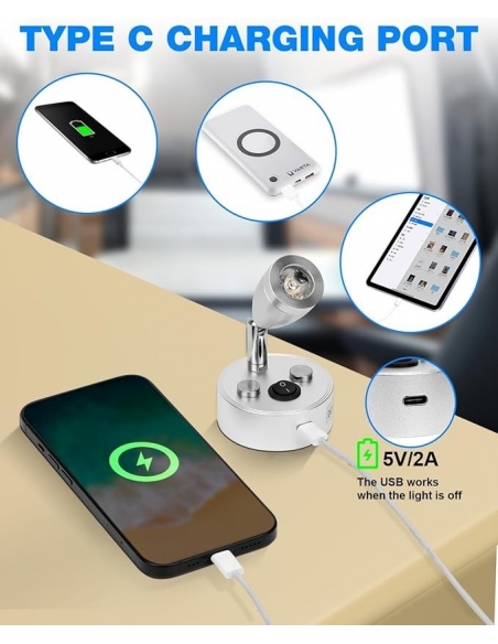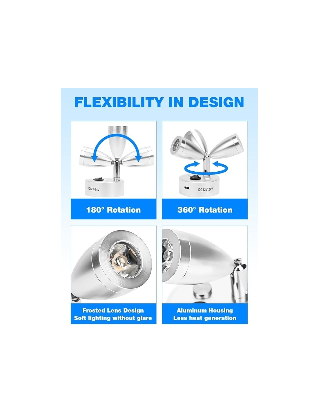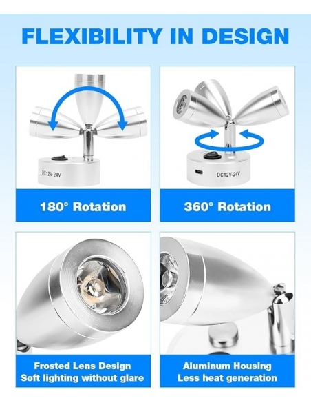 - 【Direzione di illuminazione flessibile】Per soddisfare le esigenze di illuminazione di diverse scene, è possibile regolare facilmente la direzione dell'illuminazione della luce LED per camper SUPAREE 12V USB ruotando il lampione. La luce di lettura regolabile è perfetta per illuminare l'area necessaria senza disturbare gli altri e senza bisogno di accendere le luci principali nel camper.