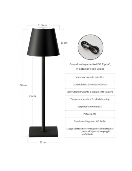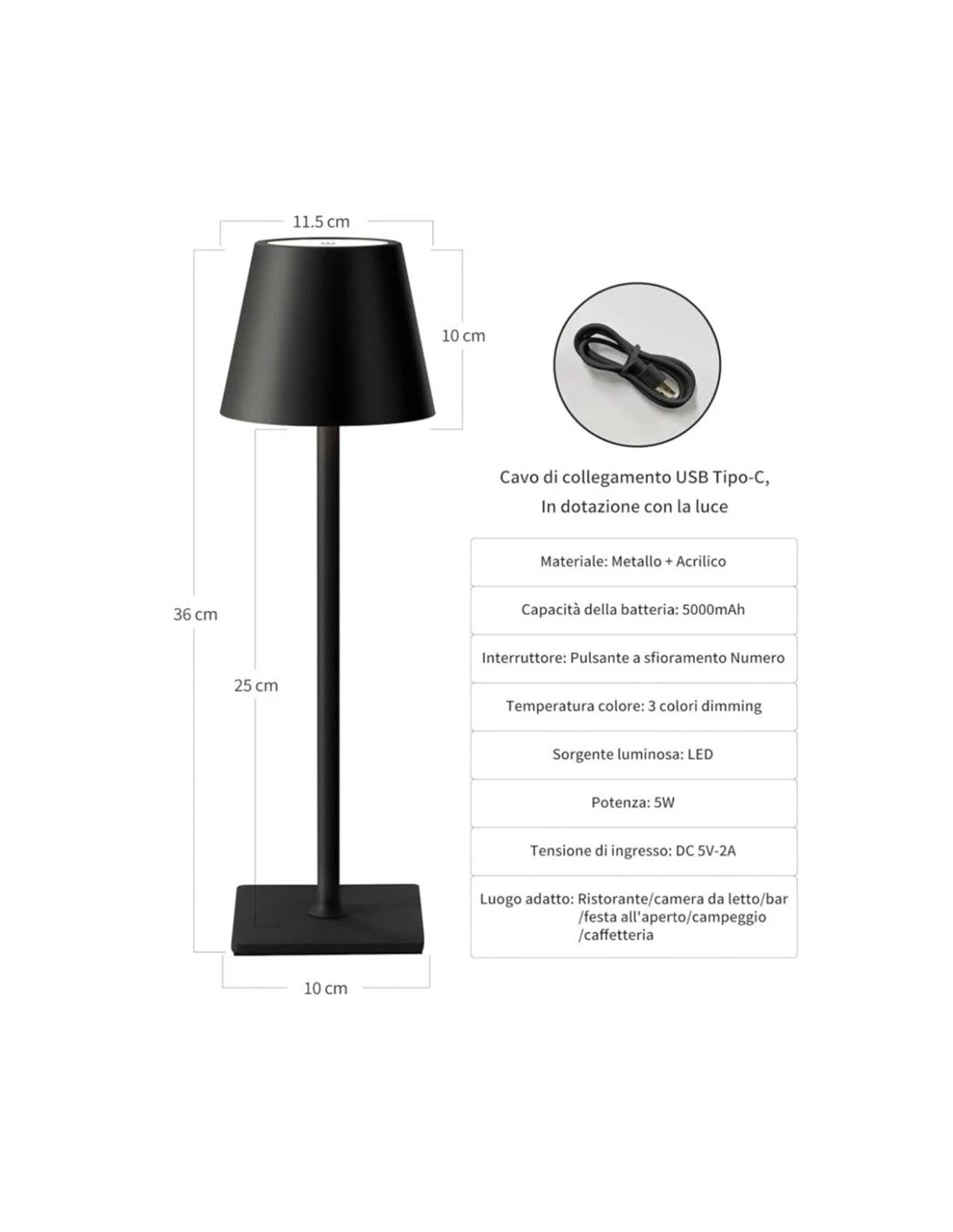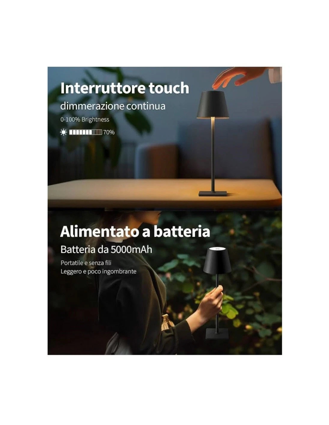 Visdanfo 2 x Lampada da Tavolo Scrivania Senza Fili Touch LED Batt Ricaricabile