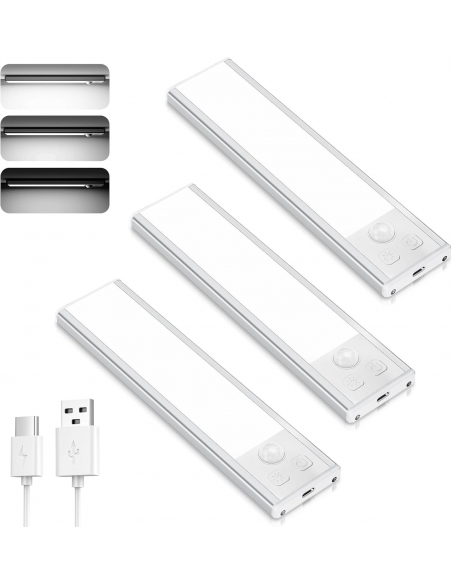 TOPPLEE Luce Sottopensile LED Sensore Cucina Armadio Scale Garage Letto 3 Pezzi