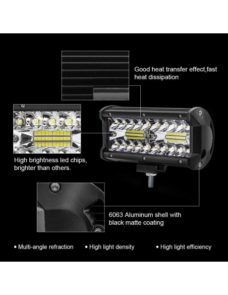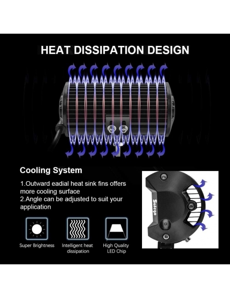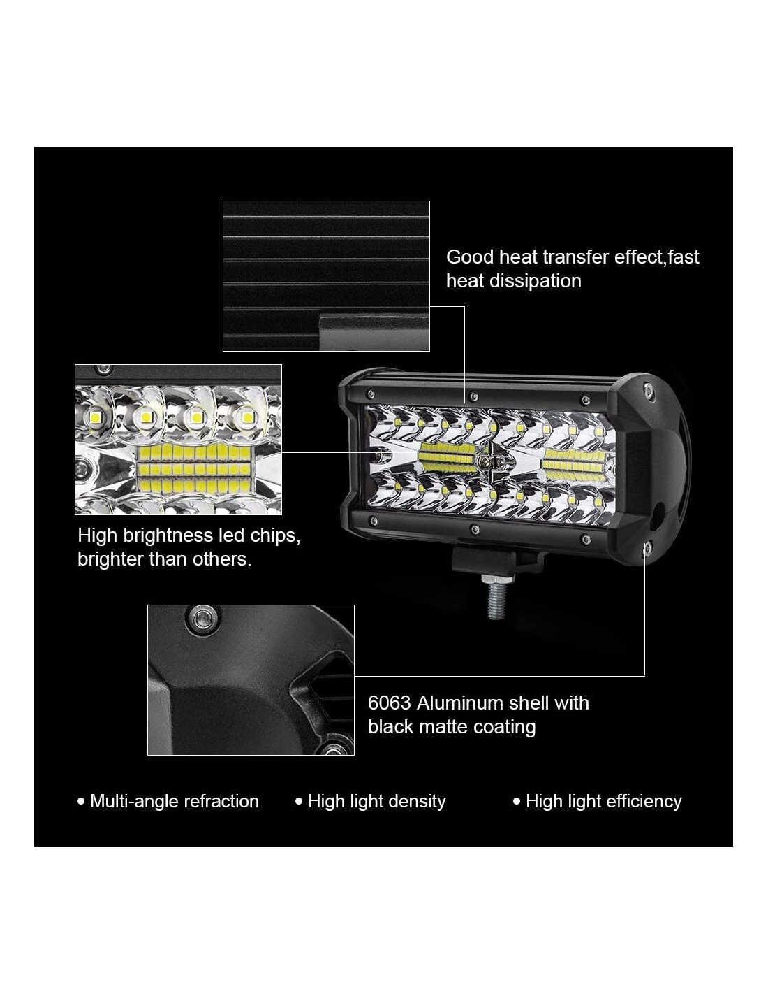 Raffreddamento Efficace - Sistema di raffreddamento efficiente per queste luci a LED con alette termiche progettate appositamente e lega di alluminio pressofuso efficace per il dissipatore di calore, un migliore raffreddamento prolungherà la durata della barra di lavoro di 120W oltre le 50.000 ore. Il dissipatore di calore integrato consente ai LED di funzionare al fresco e garantisce la massima efficienza dei LED.