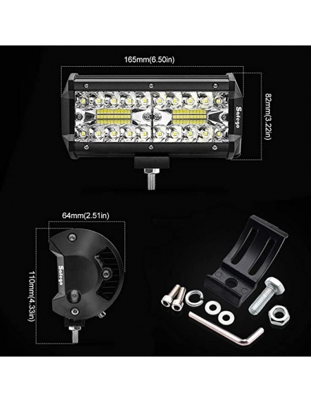 Struttura Durevole - Impermeabile a IP67, con alloggiamento in alluminio pressofuso e lente PC antiurto, rivestimento protettivo resistente per qualsiasi condizione di utilizzo estremo. Questa barra luminosa a LED è al 100% resistente alla polvere e in grado di proteggere dall'immersione in acqua, lavorando bene in giornate piovose, sabbiose, nebbiose e in altri ambienti difficili.