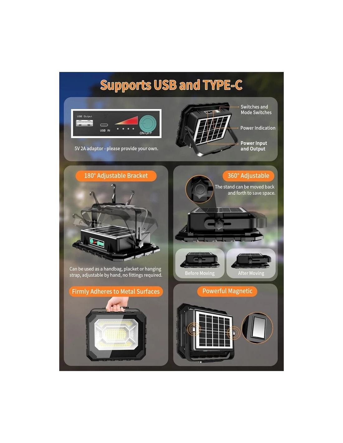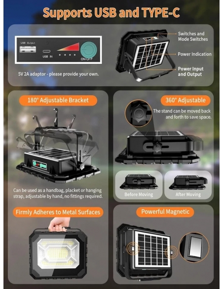 ADEWALK JGD200 Faro Led Energia Solare Ricaricabile 200W 16000Mah Portatile