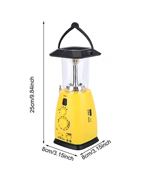 Due modalità di illuminazione. È una lampada da campeggio a LED luminosa con due modalità di luminosità. È possibile scegliere tra due modalità di illuminazione. C'è anche una radio per ricevere informazioni e un generatore di dinamo per caricare i telefoni cellulari