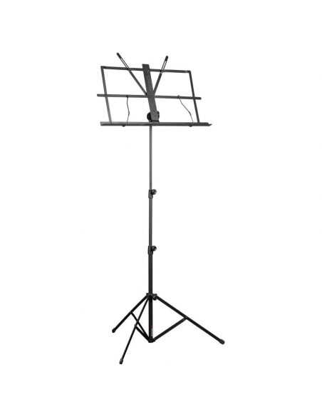 Leggio da orchestra con altezza regolabile, con appoggia spartiti inclinabile e struttura in acciaio. Pieghevole, può essere agevolmente riposto e trasportato. Disponibile in finitura nero opaco nella versione con pratica borsa di trasporto in nylon inclusa.
