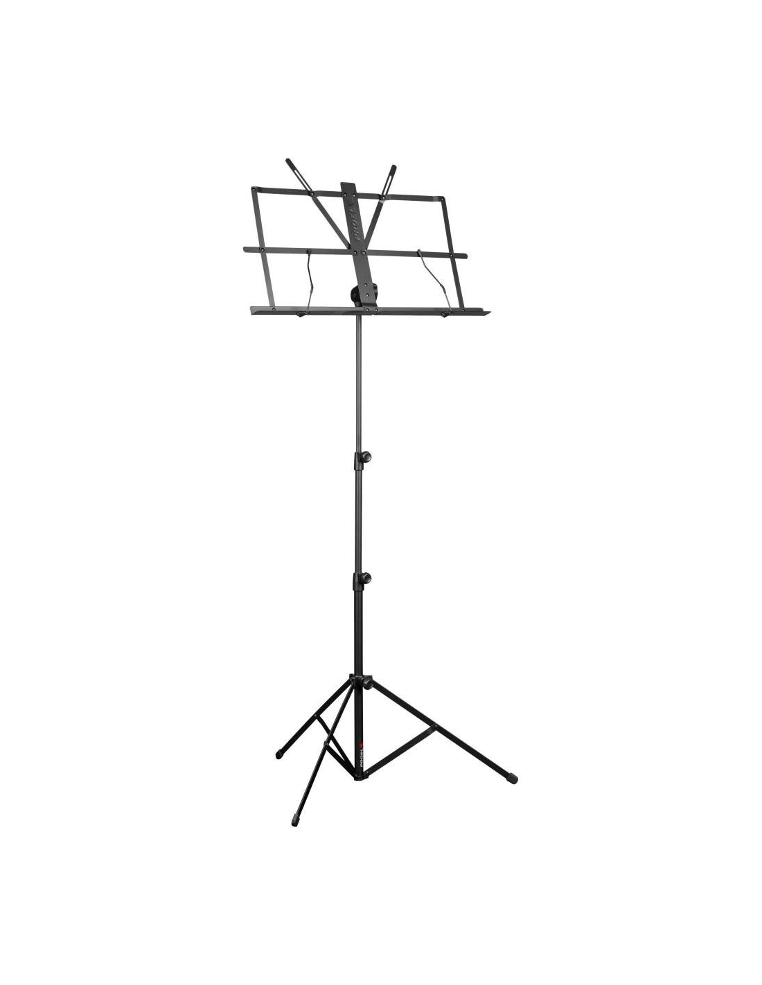 Leggio da orchestra con altezza regolabile, con appoggia spartiti inclinabile e struttura in acciaio. Pieghevole, può essere agevolmente riposto e trasportato. Disponibile in finitura nero opaco nella versione con pratica borsa di trasporto in nylon inclusa.