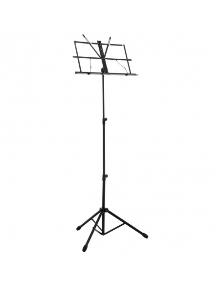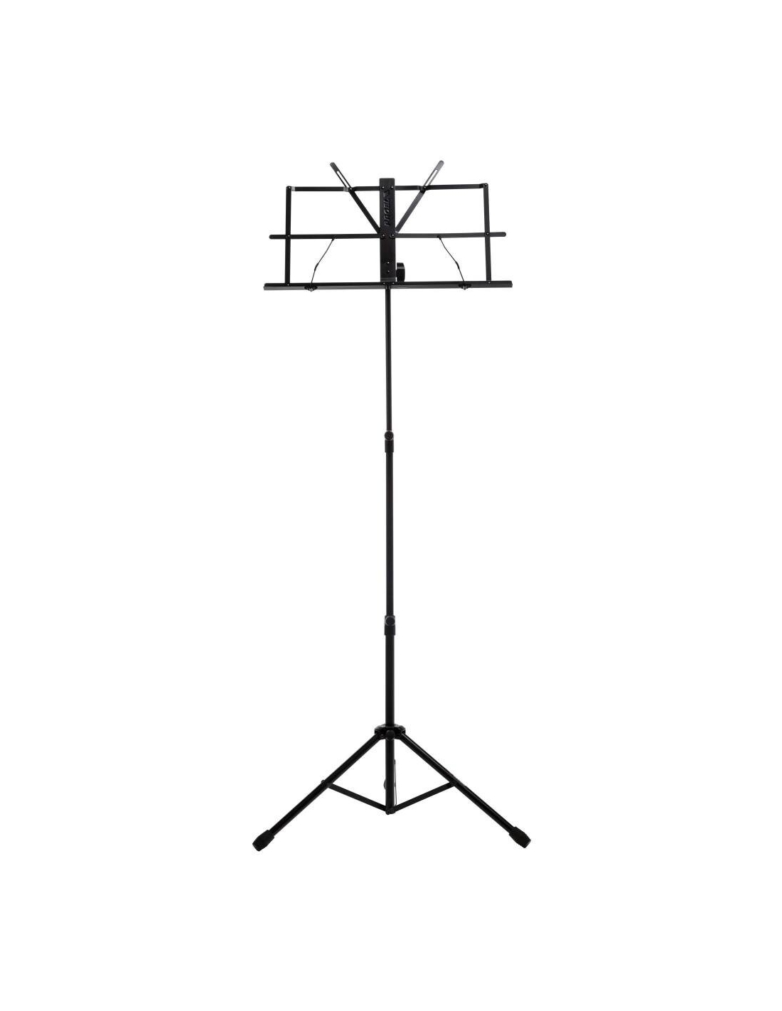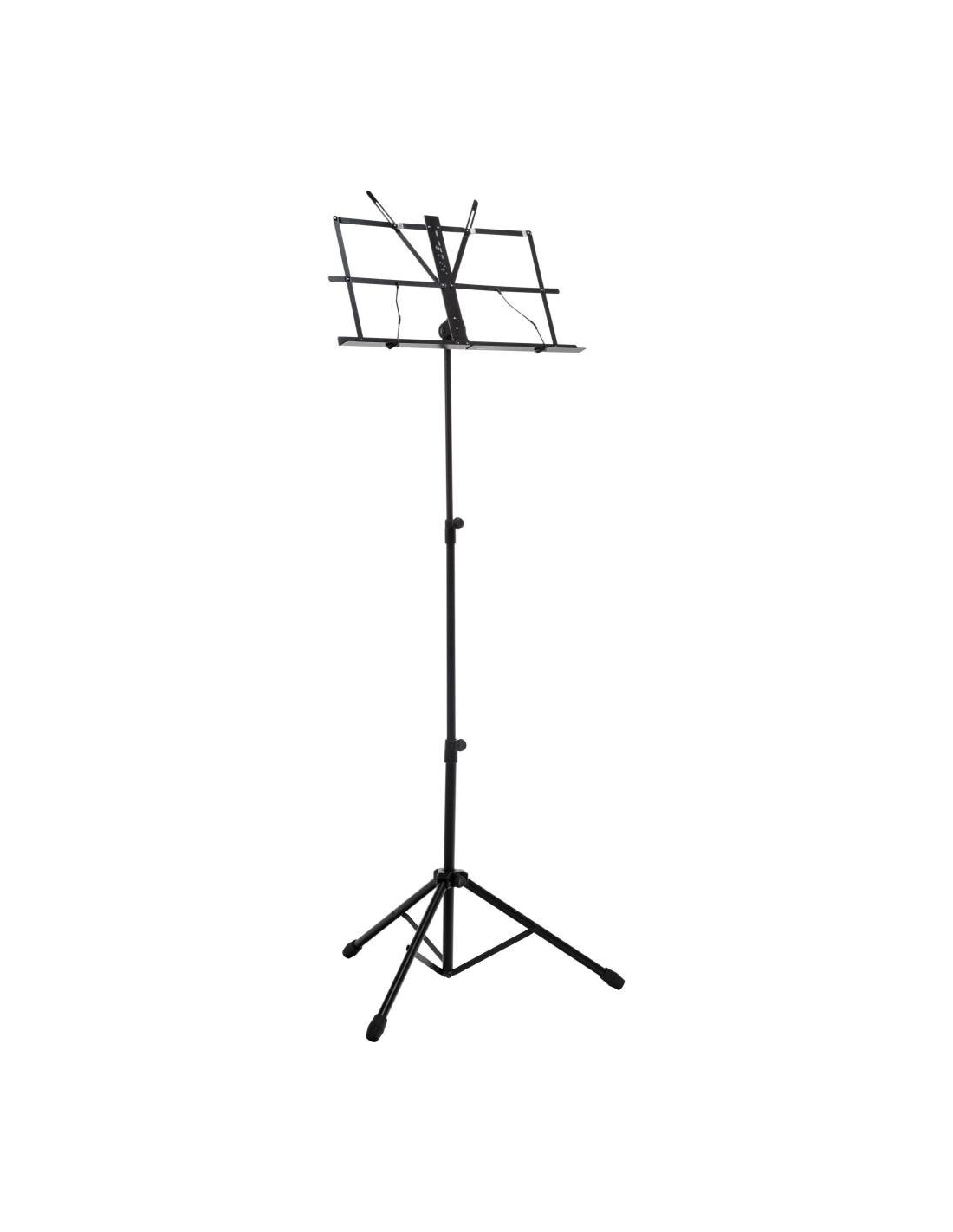 Leggio professionale in robusto acciaio tubolare. Regolabile in altezza, inclinabile grazie ai nuovi morsetti bloccanti, perfezionati per garantire la massima stabilità . Fornito di appoggia spartiti orientabile e piedini in gomma. Borsa da trasporto in nylon 210 inclusa. Colore Nero