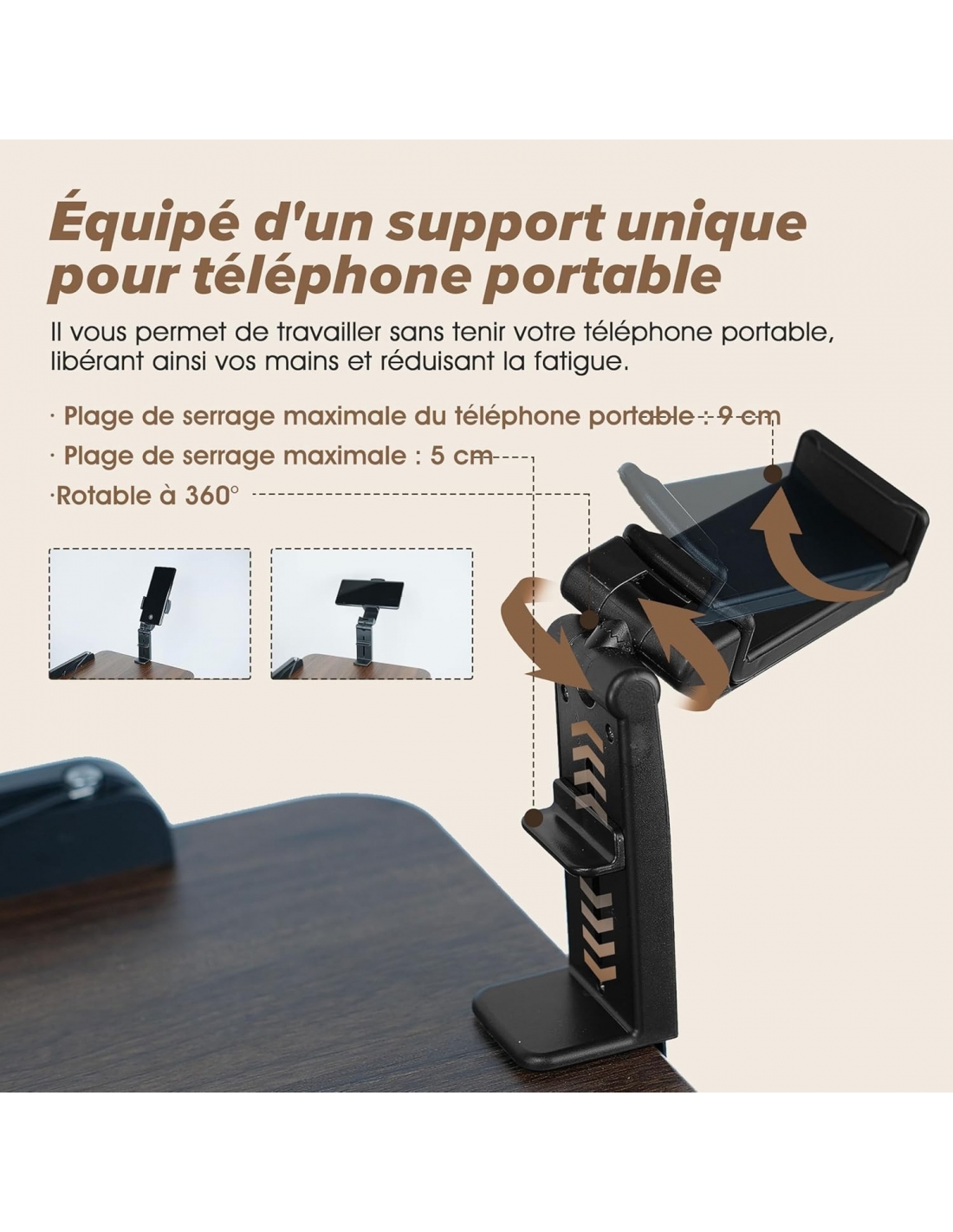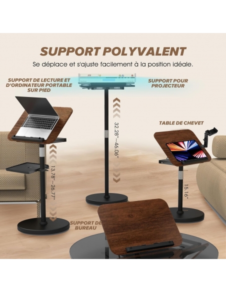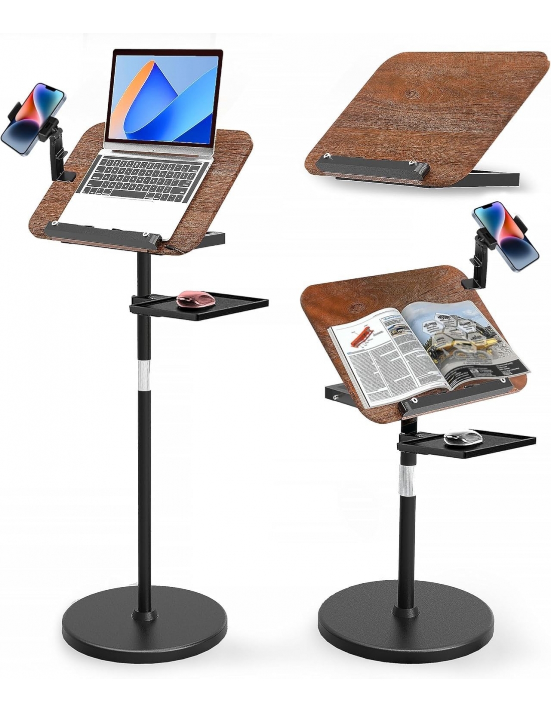 Aoikoy Leggio regolabile 2 in 1 per la lettura, supporto da scrivania e da pavimento a doppio uso con vassoio e morsetti elastici, per tablet e laptop, altezza regolabile da 23,5 a 52 pollici (noce)