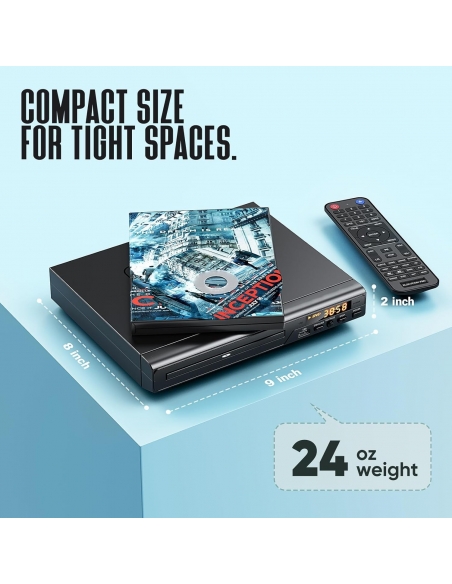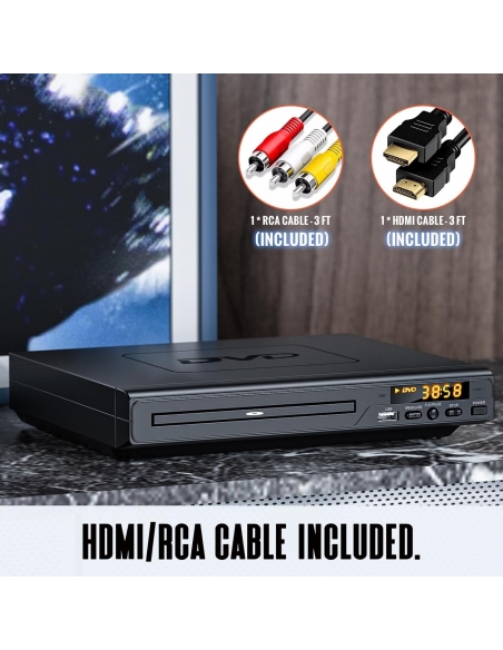 - 𝐌𝐈𝐆𝐋𝐈𝐎𝐑𝐀 𝐋'𝐄𝐒𝐏𝐄𝐑𝐈𝐄𝐍𝐙𝐀: Questo lettore DVD con cavo HDMI per TV può riprodurre una presentazione di immagini JPEG con la tua musica MP3 in sottofondo, il tutto da un'unità USB e da un disco. Questo lettore DVD con HDMI dispone di un display e di una selezione di pulsanti sull'unità, oltre che di un telecomando completo. Questo lettore DVD per TV porta l'intrattenimento domestico a un livello superiore.