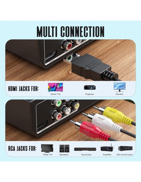 - 𝐄𝐒𝐏𝐄𝐑𝐈𝐄𝐍𝐙𝐀 𝐕𝐈𝐃𝐄𝐎 𝐂𝐎𝐈𝐍𝐕𝐎𝐋𝐆𝐄𝐍𝐓𝐄: Questo lettore DVD region free (cavo HDMI incluso) per TV dispone di 1080p per un'esperienza di qualità immagine quasi HD e un suono solido in un design compatto. Questo lettore DVD Region Free per TV mostra sfumature sottili e gradazioni di colori più uniformi, ottenendo un'immagine più vivace e naturale. Ti fornisce più connessioni per l’uscita video.