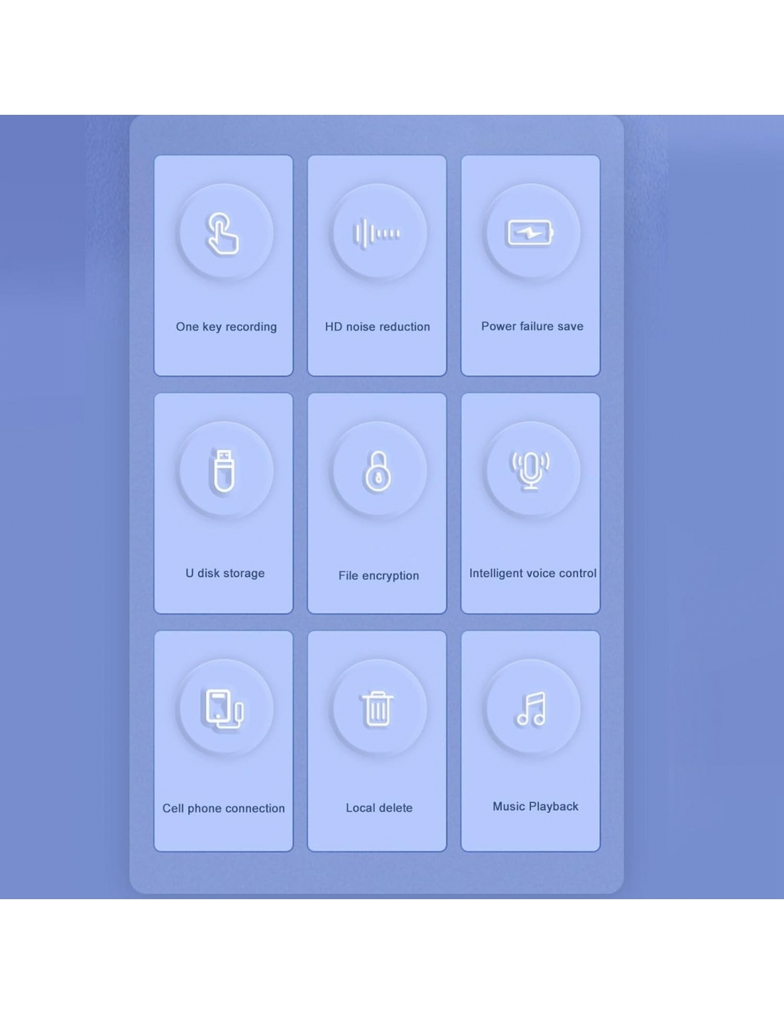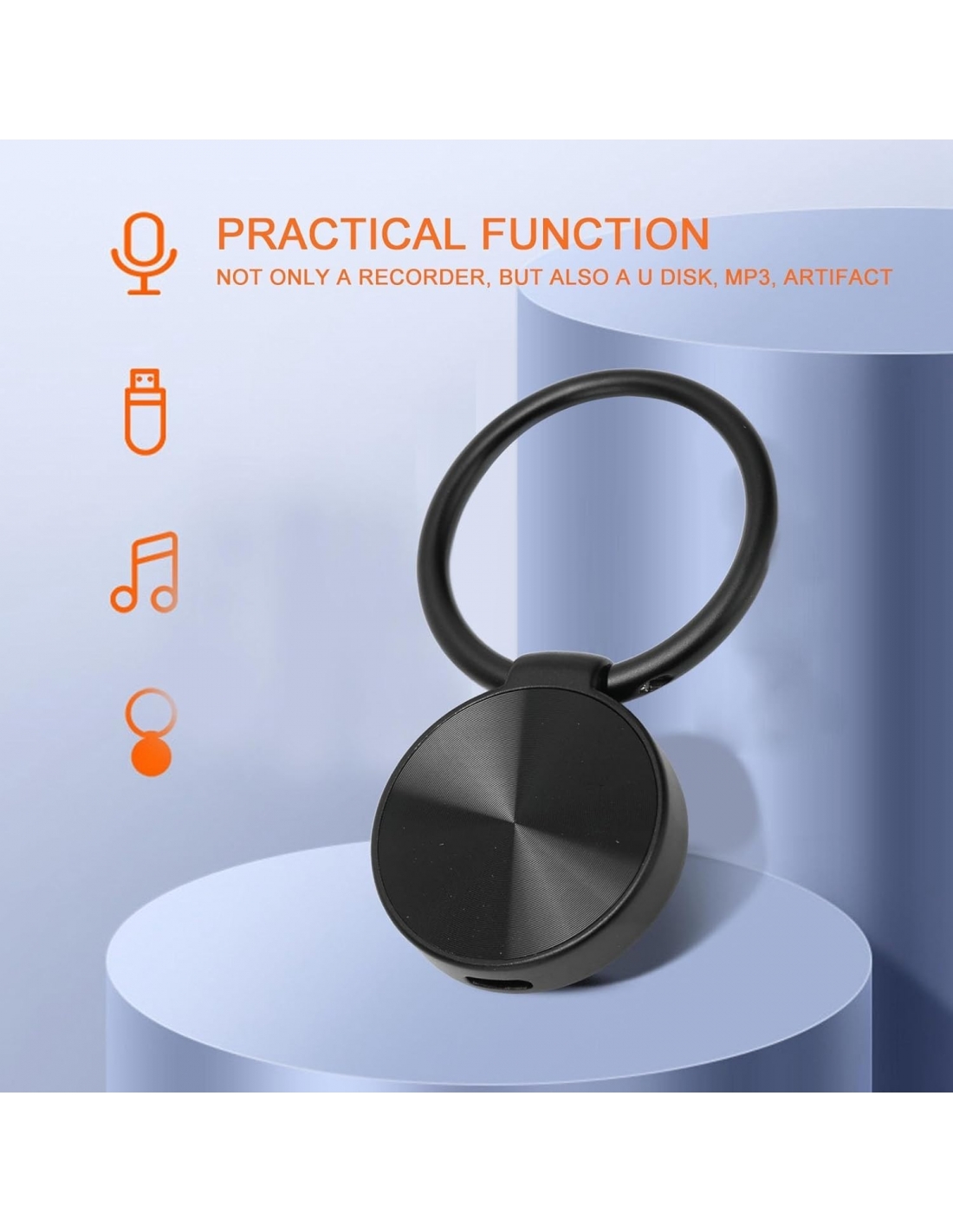 - RIDUZIONE DEL RUMORE: il registratore vocale portachiavi è dotato di un processore acustico octa , che aiuta a filtrare il rumore di fondo e registrare in modo più chiaro.