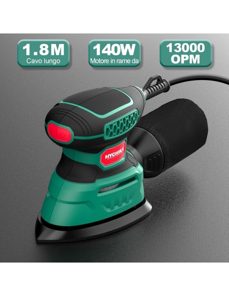HYCHIKA TX-104 Levigatrice per Legno 140W, levigatrice 13000 OPM con efficiente raccolta della polvere, con carta vetrata 12PCS, ideale per levigare il legno e rimuovere ruggine e vernice