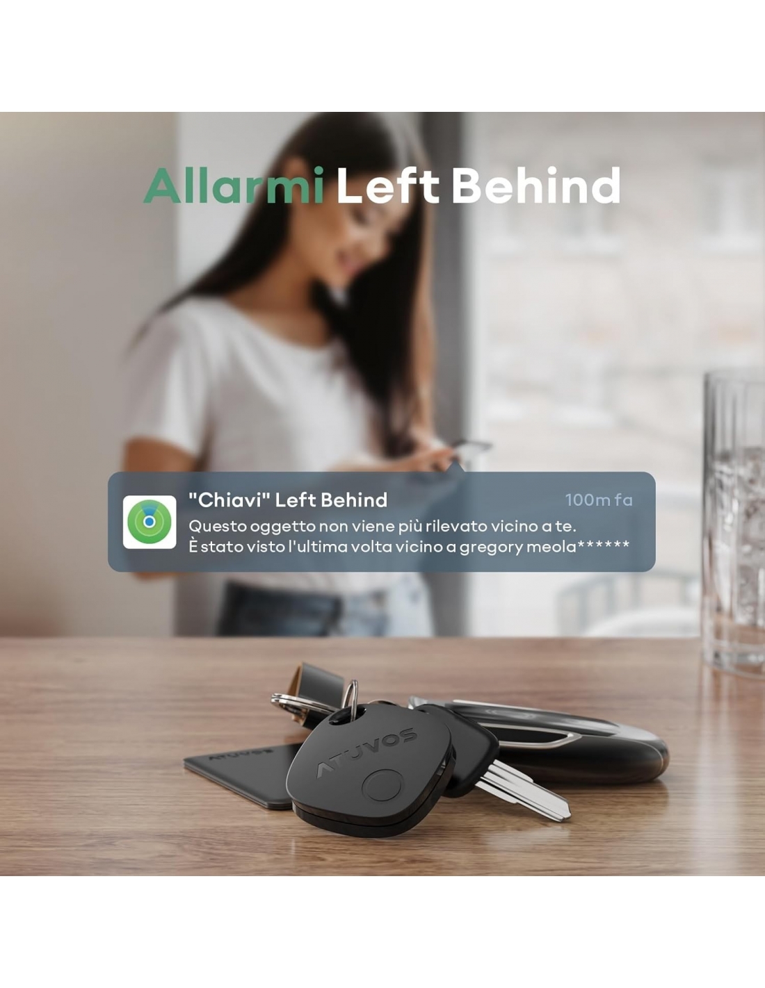 - 【Promemoria dimenticato e modalità smarrito】: Evita di perdere i tuoi effetti personali con avvisi immediati tramite l'app ”Dove è“. Se perdi il tuo localizzatore ATUVOS, metti ATUVOS in modalità smarrito e ricevi una notifica automatica quando viene rilevato nella rete ”Dove è“.