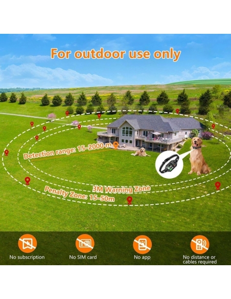 Grazie al segnale GPS, il sistema copre un’ampia area da 15 a 200 metri, offrendo una protezione affidabile e precisa per animali di ogni taglia.