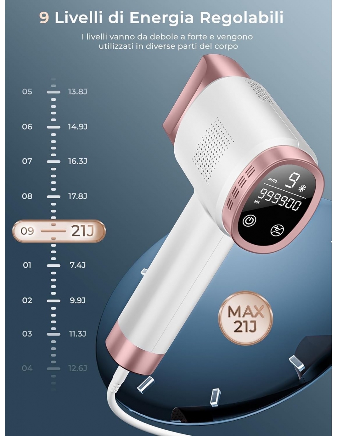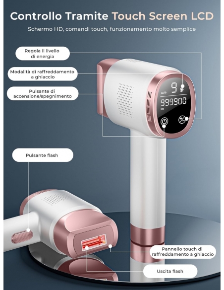 FZ-608 Epilatore Luce Pulsata Funzione Raffreddamento Ghiaccio LCD Uomo Donne