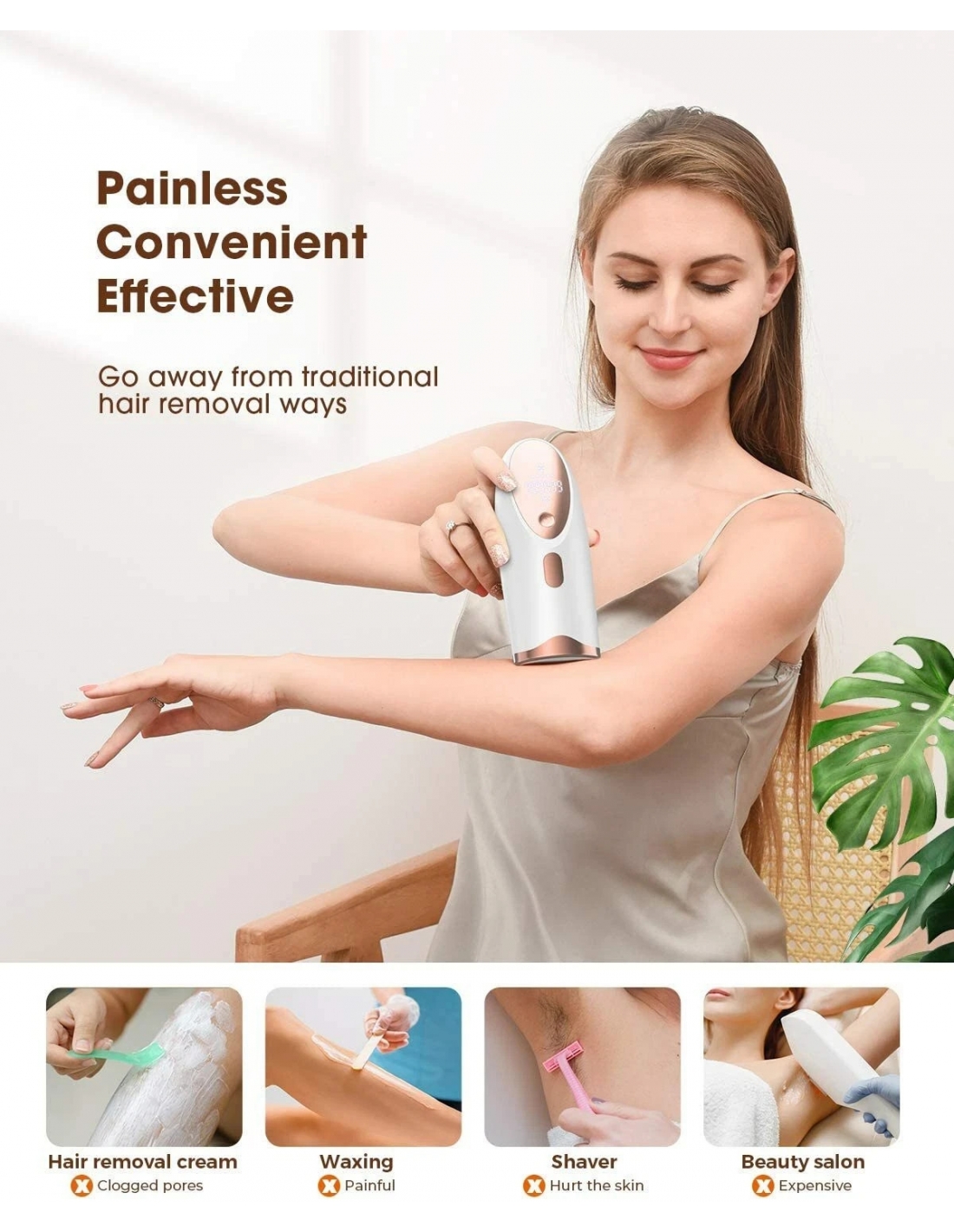 - Utilizza la tecnologia IPL avanzata per interrompere il ciclo di rigenerazione dei capelli. La luce è morbida e indolore, non danneggerà la pelle. Anche i principianti possono farlo da soli a casa.