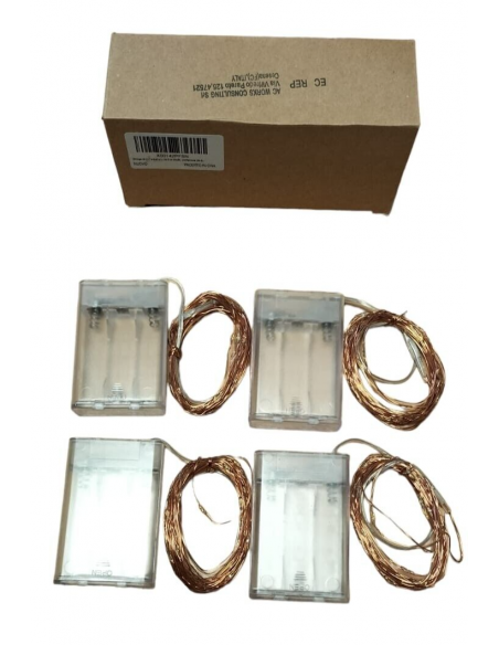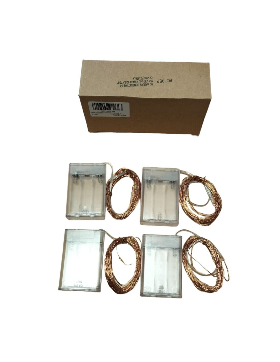 Led Stringa Luci Batteria 4 Pezzi 5 mt. 50 Led Rame Catene Luminose Natale Matrimonio Decorative Festa Natale