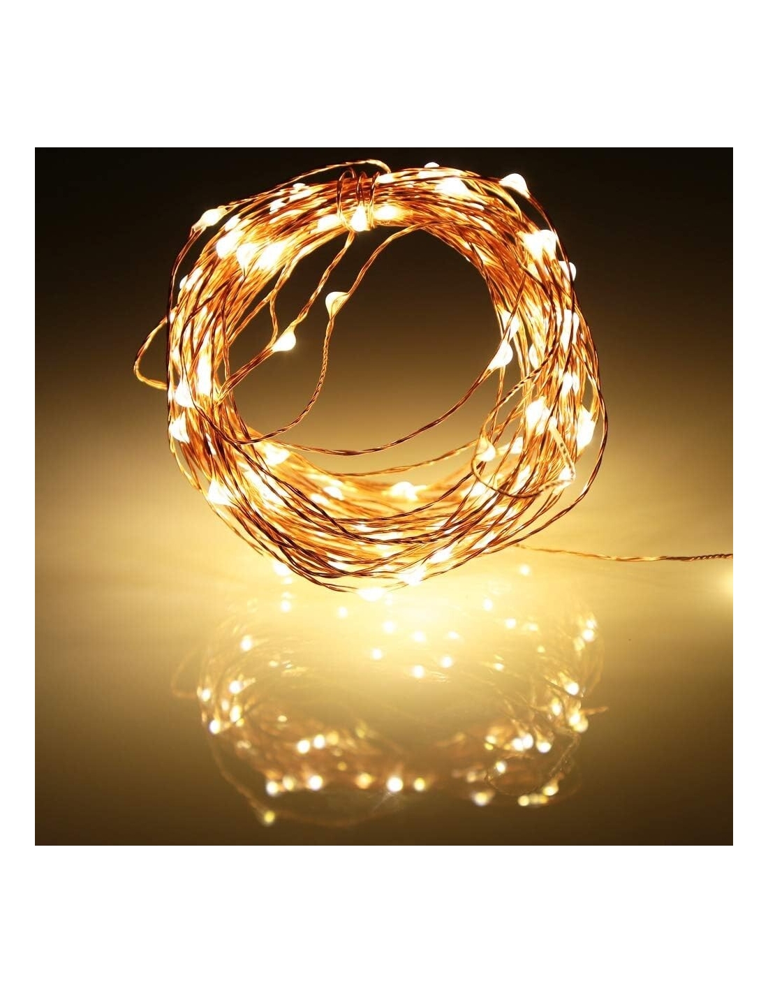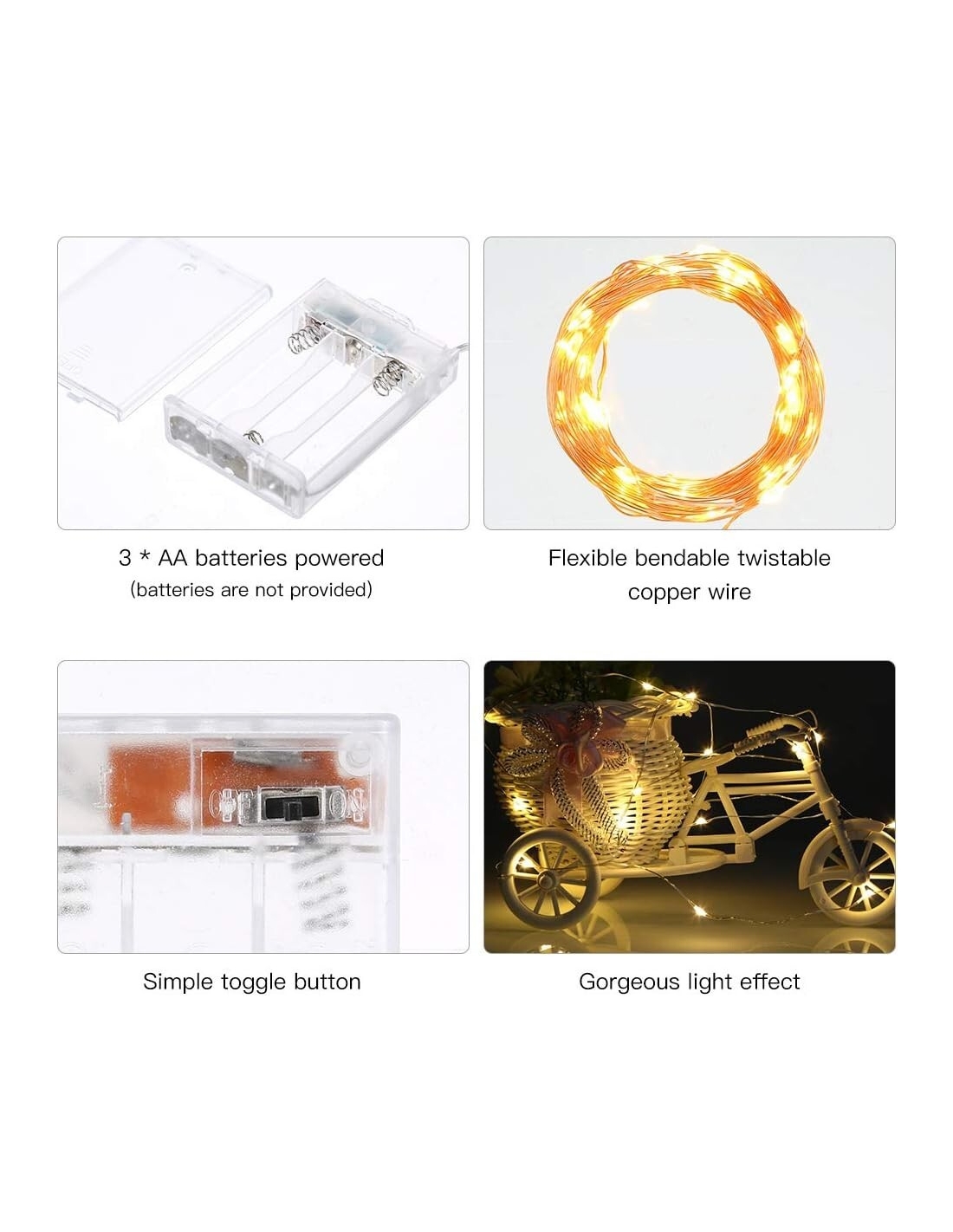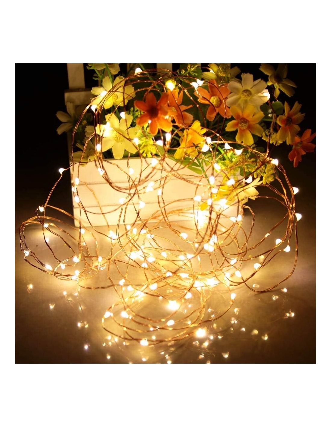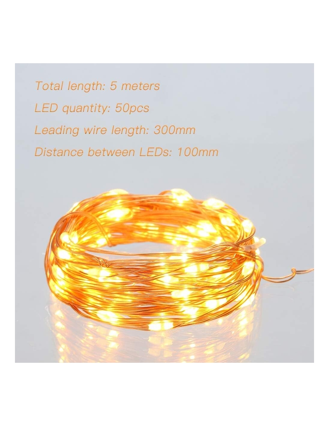 Led Stringa Luci Batteria 5m 50 Led Rame Catene Luminose Bianco Caldo Feste 4 Pz