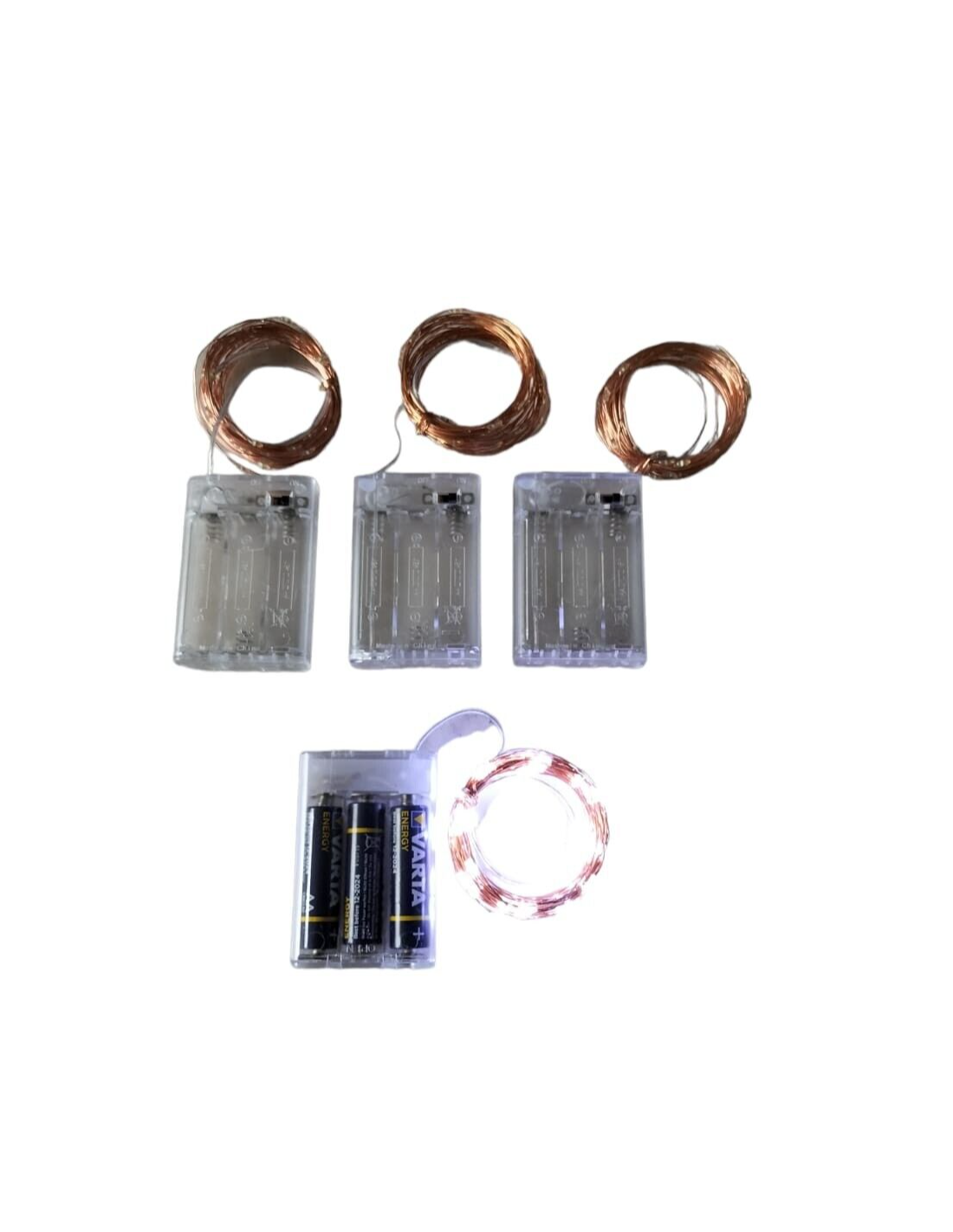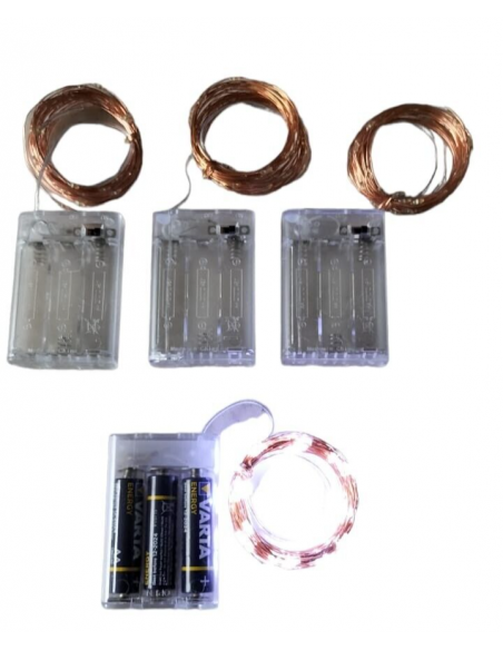 Led Stringa Luci Batteria 4 Pezzi 5 mt. 50 Led Rame Catene Luminose Natale Matrimonio Decorative Festa Natale