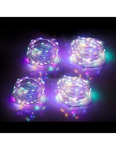 Led Stringa Luci Batteria 5m 50 Led Rame Catene Luminose Colorate Feste 4 Pz