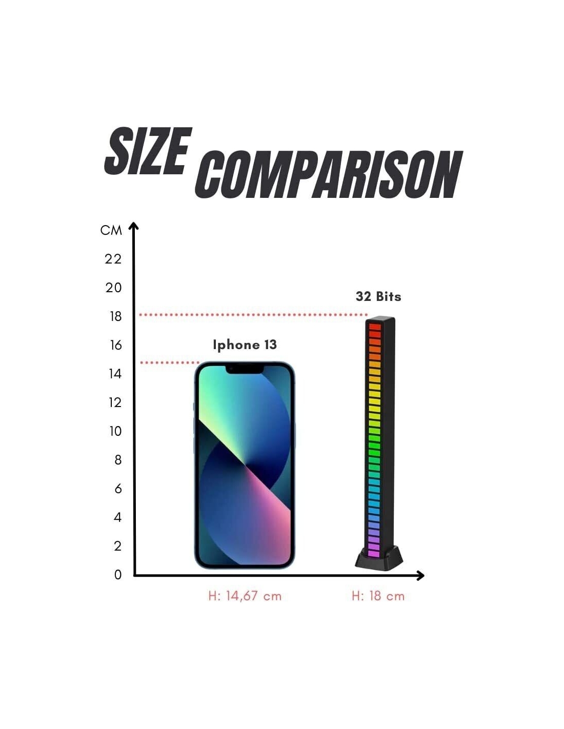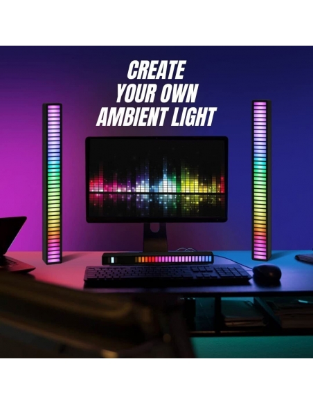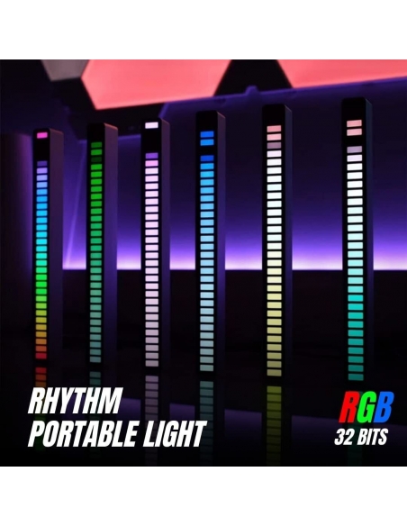 Barra Nera vu-meter striscia luminosa ritmo musicale, 32 Luci LED RGB multicolor