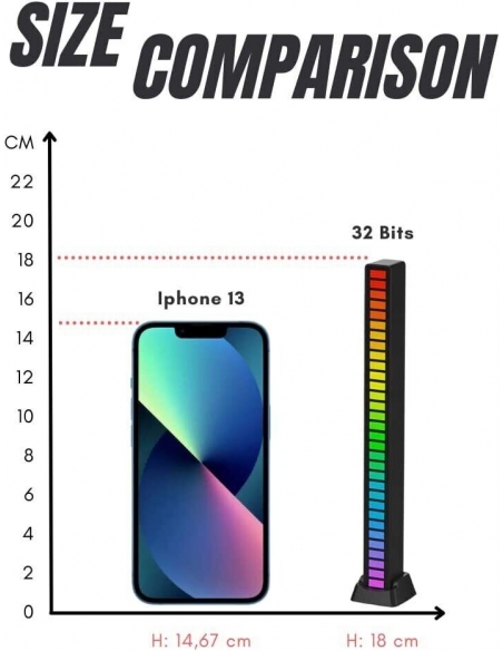 PROCESSORE ARM A 32 BIT: Ottieni musica dinamica e rilevamento del campo sonoro. È controllato ed eseguito automaticamente da AGC. L'interno utilizza 32 luci LED a colori RGB, insieme a uno speciale microfono musicale e un processore ARM a 32 bit con una frequenza di 72 M, per realizzare l'espressione dinamica della musica e del campo sonoro. La risposta è fino a 0,08 secondi, il pickup è sincronizzato con il ritmo, lo spettro dinamico, senza ritardi e salta con il suono.