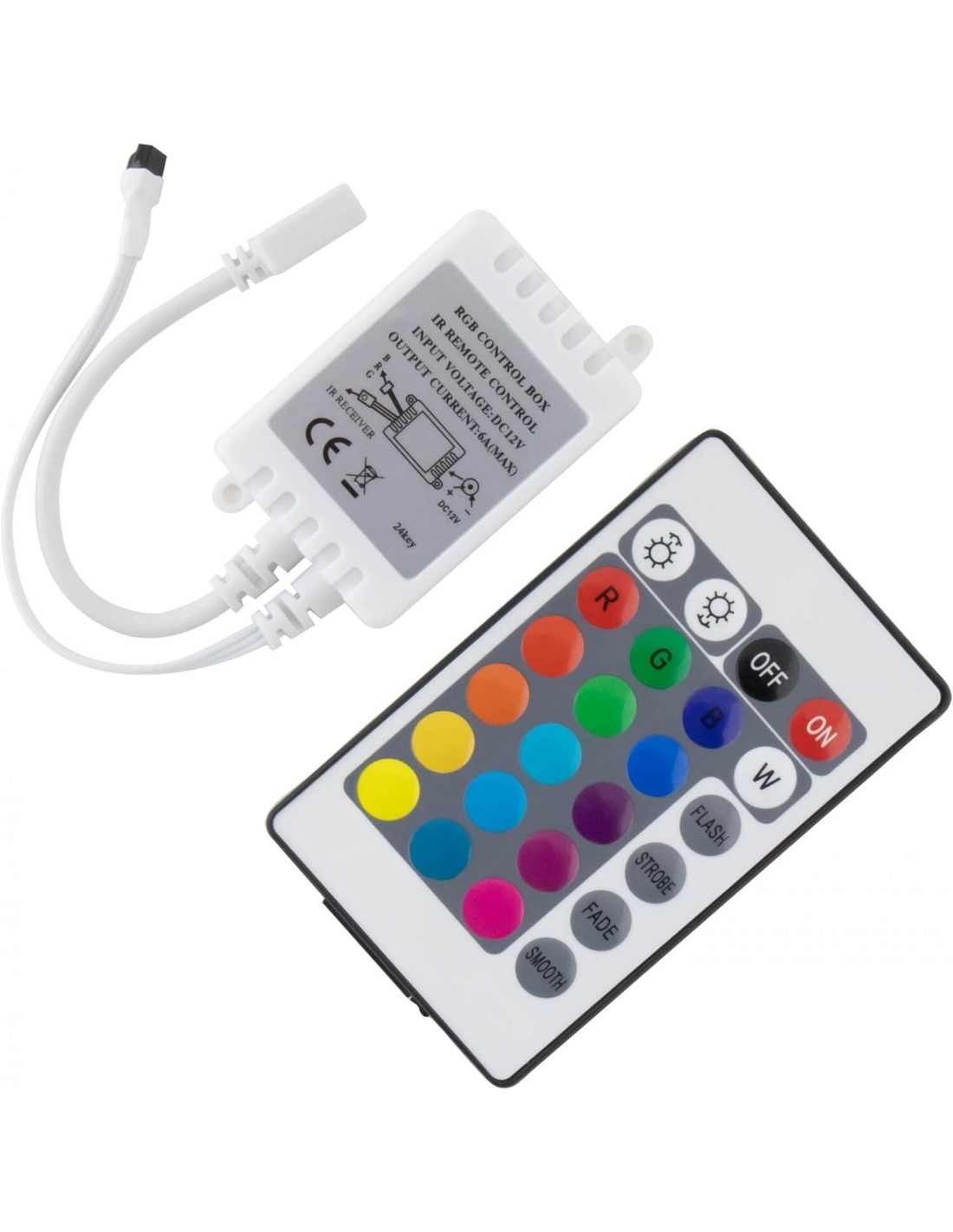 - Controller IR (infrarossi) RGB a 24 tasti, con telecomando