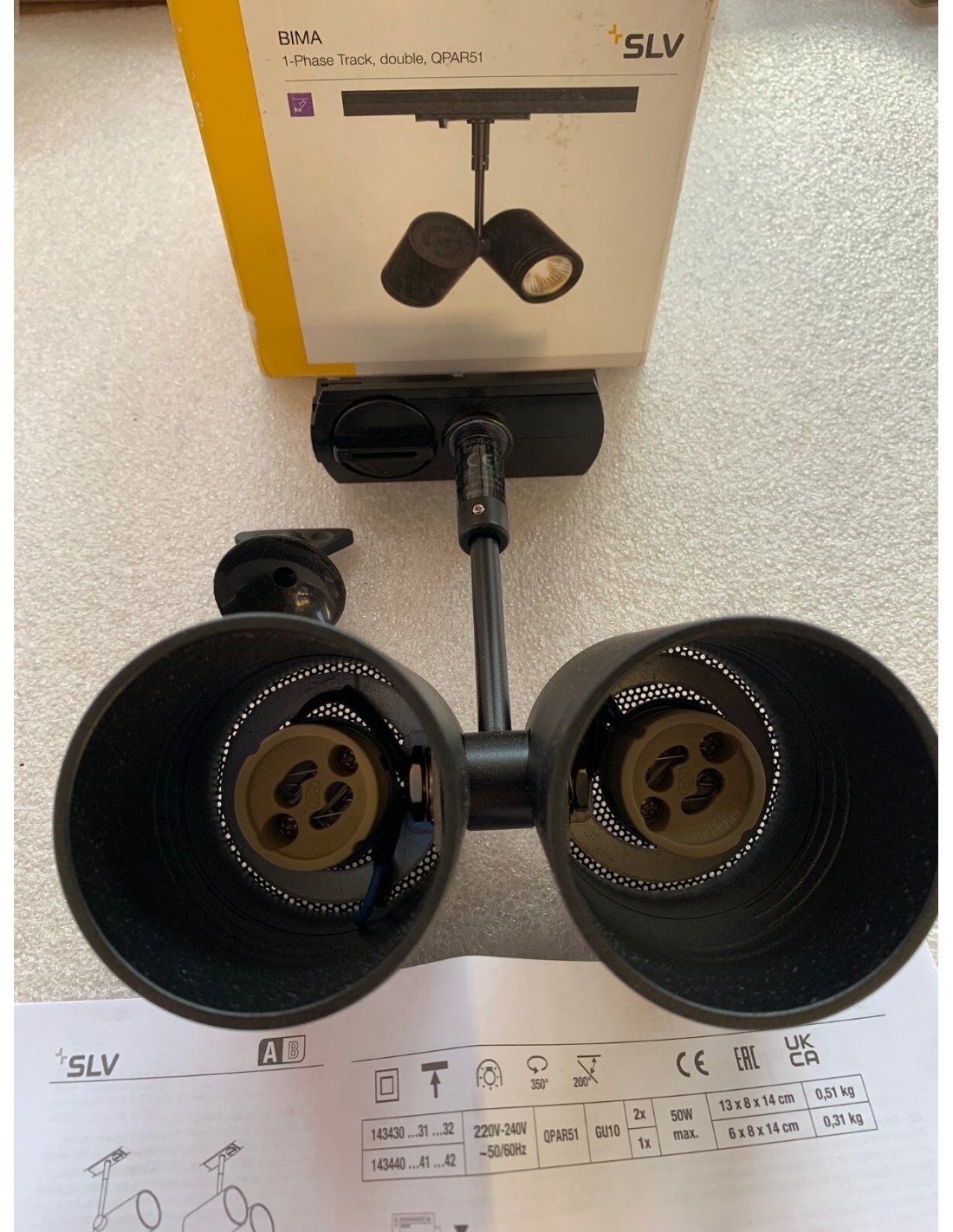 BIMA SLV QPAR51 trifase 2 LED faretto a plafone Due luci 50W Sistema a binari Illuminazione di Interni / GU10 Spot a Nero Opaco Classe di efficienza energetica A++