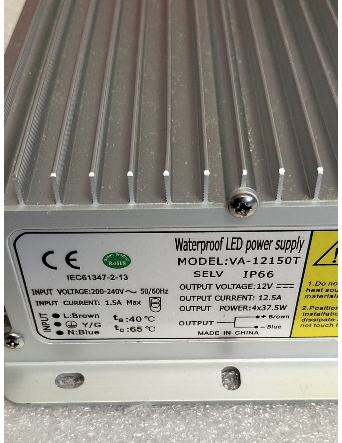 Driver Alimentatore LED VA-12150T a tensione costante 12VDC 150W IP66 240V