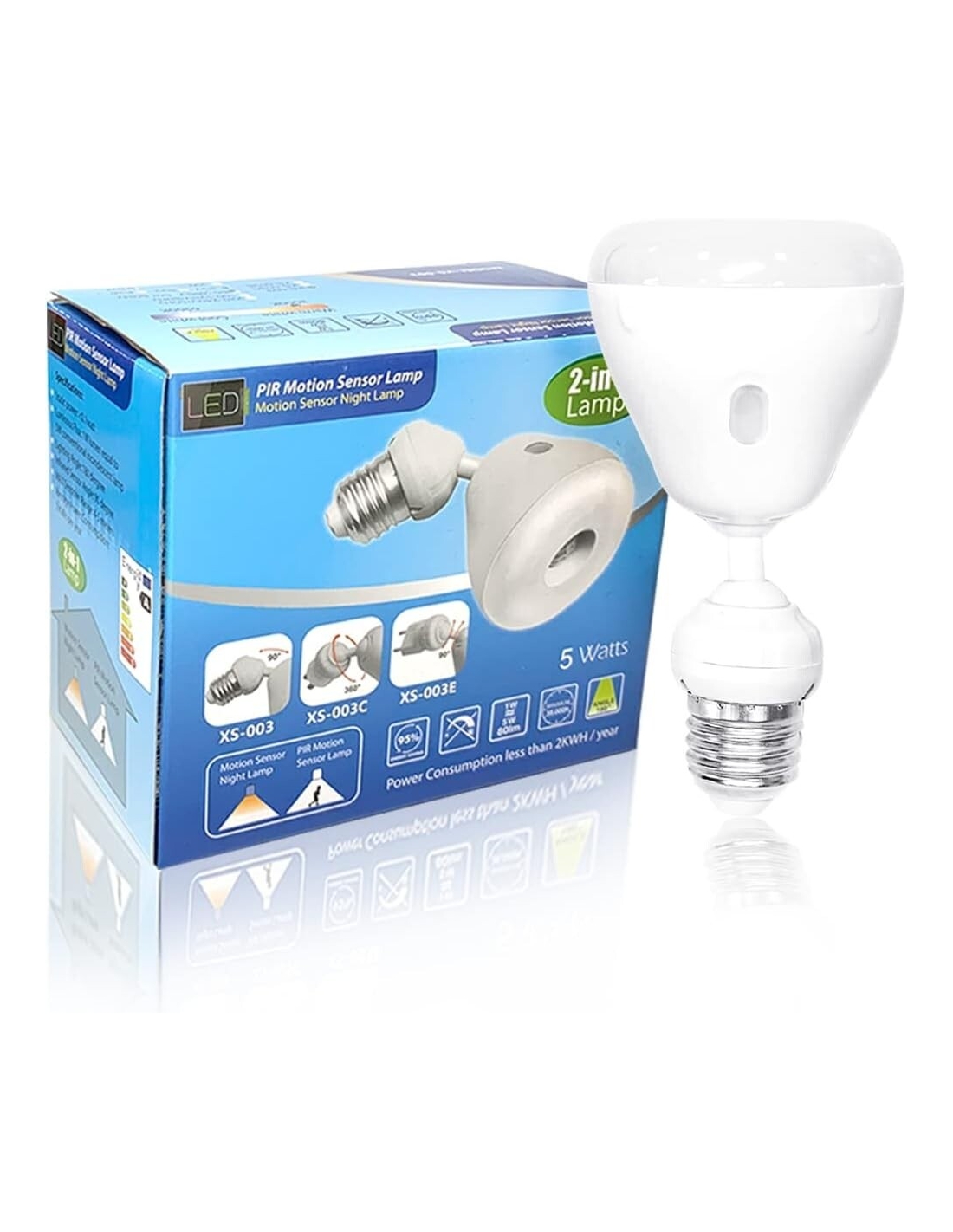 XS-003 Lampadine LED E27 Sensore di Movimento 5W E27 Collo Regolabile Bianco Caldo [Classe di efficienza energetica F]