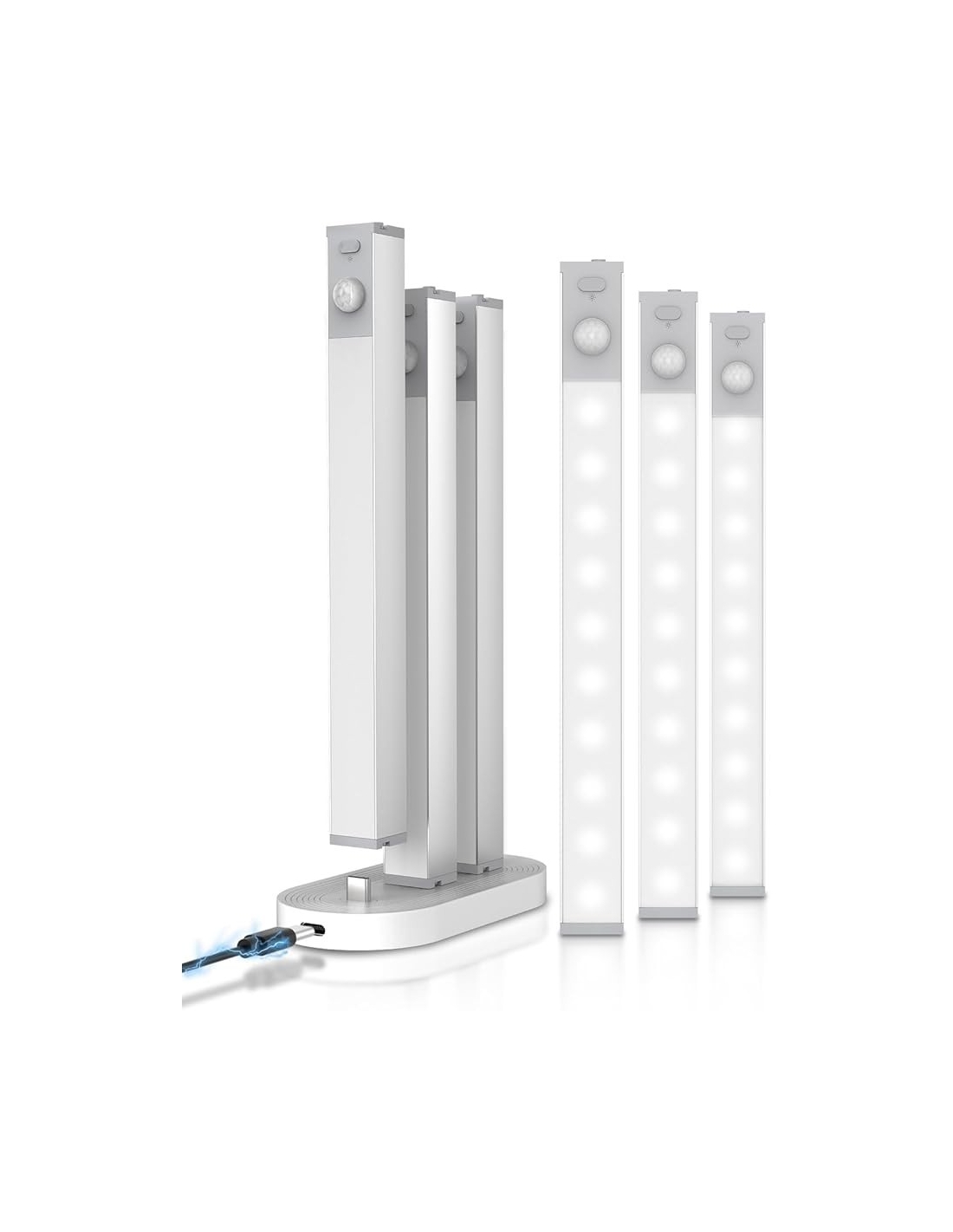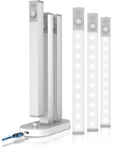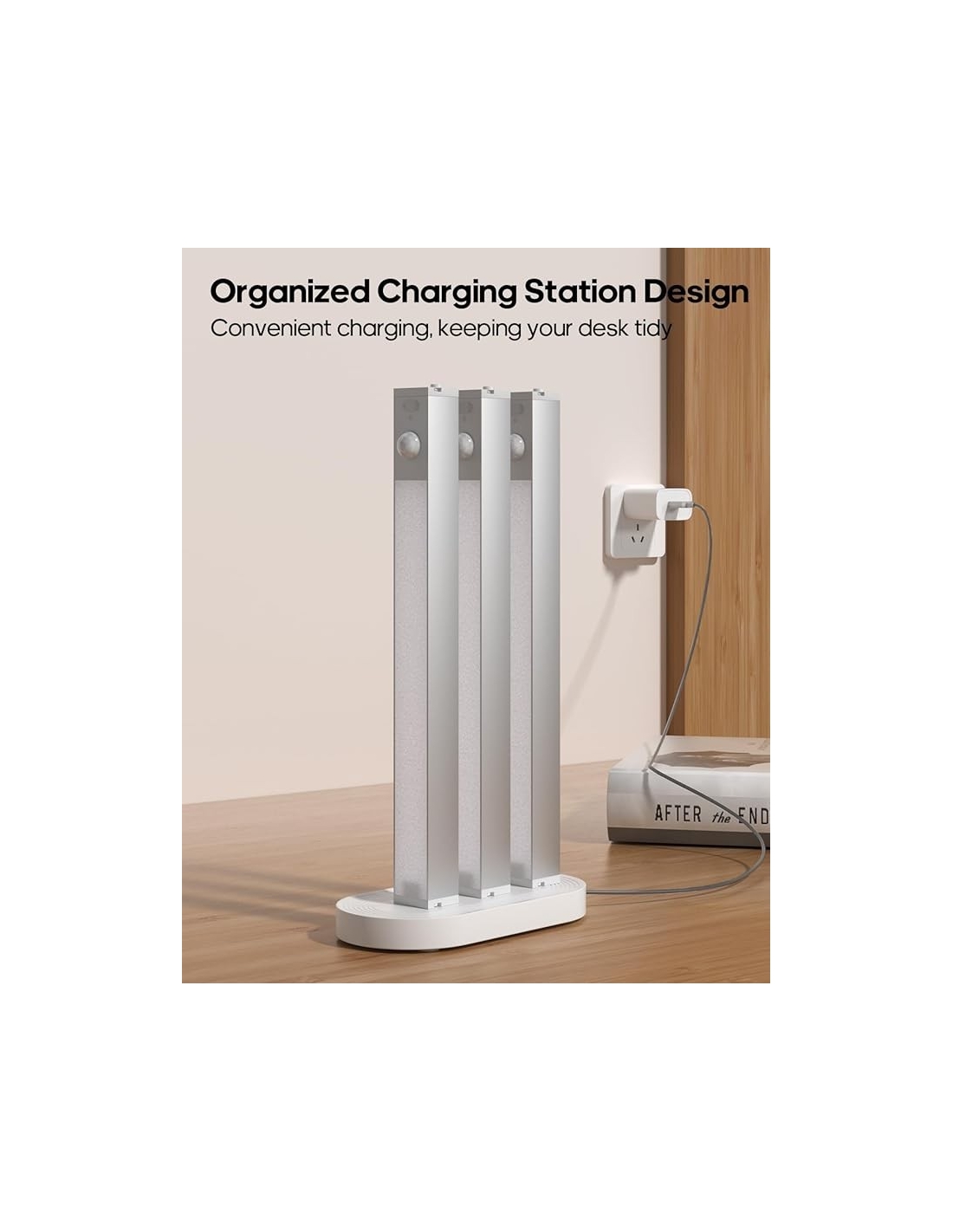 - 【Ricaricabile con Stazione di Ricarica Multipla】 – Le luci a LED per armadi possono essere ricaricate tramite stazione di ricarica o cavo USB. La stazione di ricarica può caricare 3 dispositivi contemporaneamente. È una soluzione di archiviazione molto comoda e mantiene il piano di lavoro ordinato e pulito.
