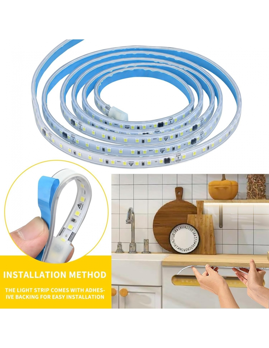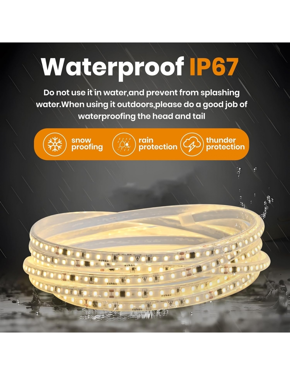 Sunbeyond Striscia LED 220V esterno impermeabile 3 metri, Strisce nastri led adesive 220v da interno,120leds/m Bianco Caldo 3200K,decorazioni per la casa Illuminazione, cucina,giardino,luce LED con interruttore