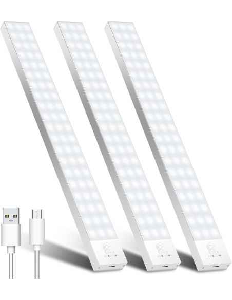 OUILA Led Armadio con sensore di movimento, 4 Modalità, Sottopensile Luce Notturna, USB Ricaricabile, Striscia Led per Cucina (Bianco-5000K, 32cm*3 Pezzi)
