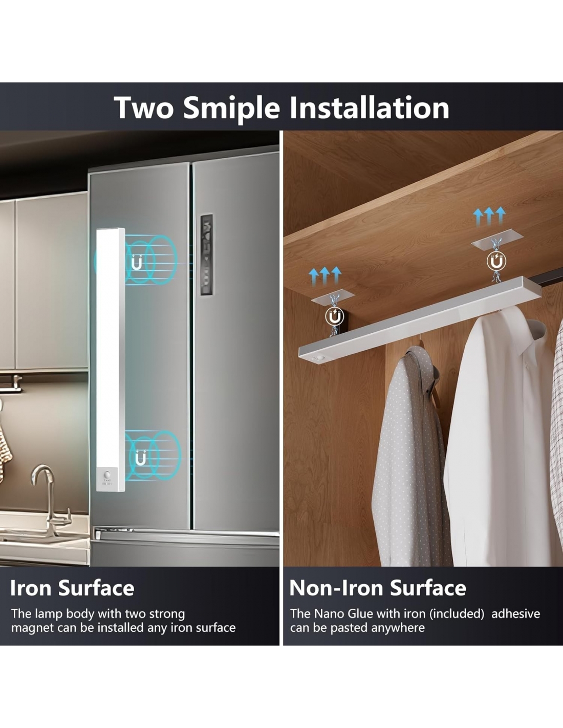 - ✨[2 Metodi di di installazione: il magnete incorporato, le luci per armadi possono essere collegate direttamente a qualsiasi superficie di ferro che si desidera. Con nastro magnetico adesivo 3M, si può anche installare su qualsiasi superficie. Inoltre, è possibile utilizzare le viti in dotazione per rafforzare il magnete adesivo 3M, senza preoccuparsi che cada. Consente di cambiare facilmente la posizione.