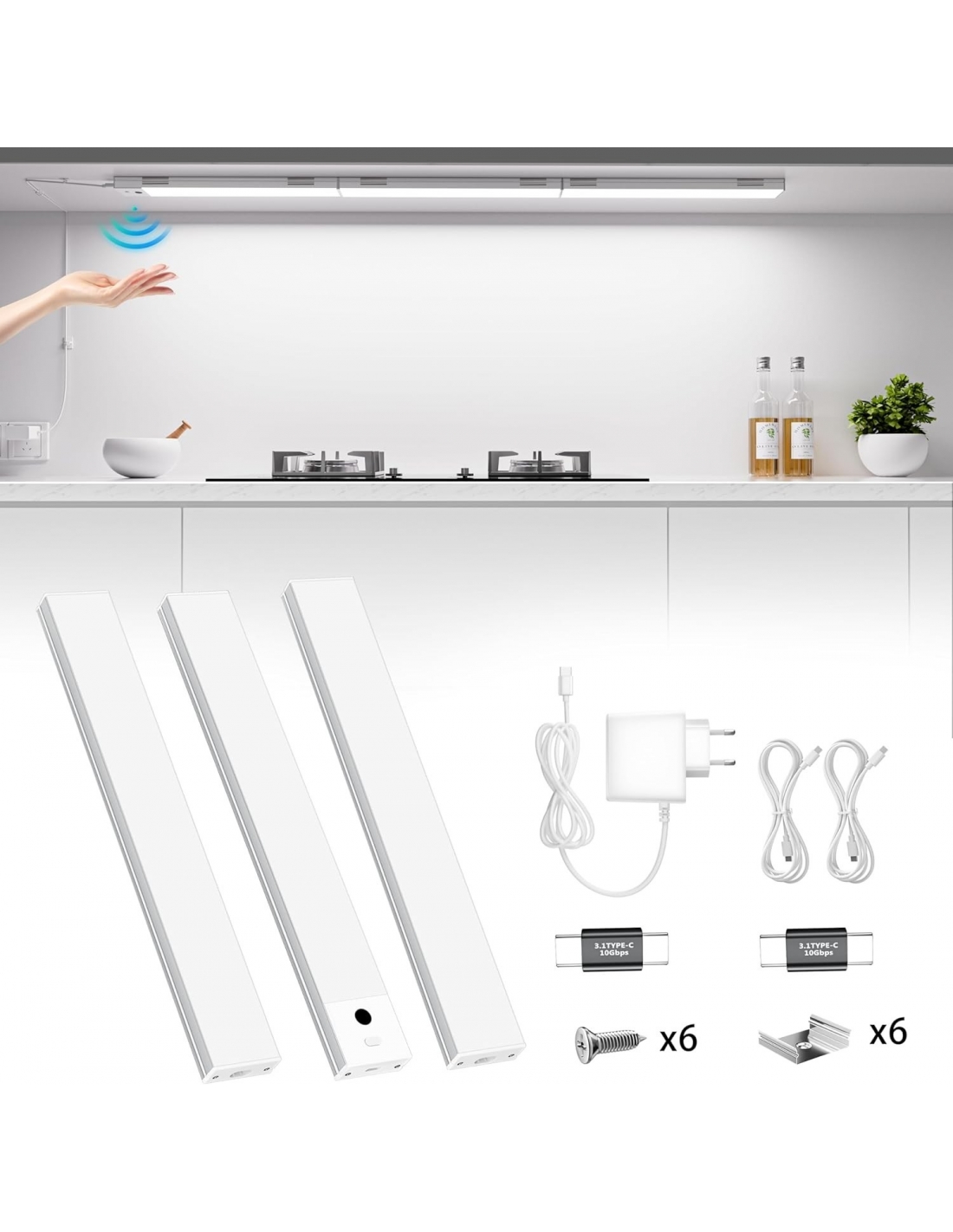 Topplee Barre Led Sottopensile Cucina x3, Dimmerabile Senza Tocco Con Sensore
