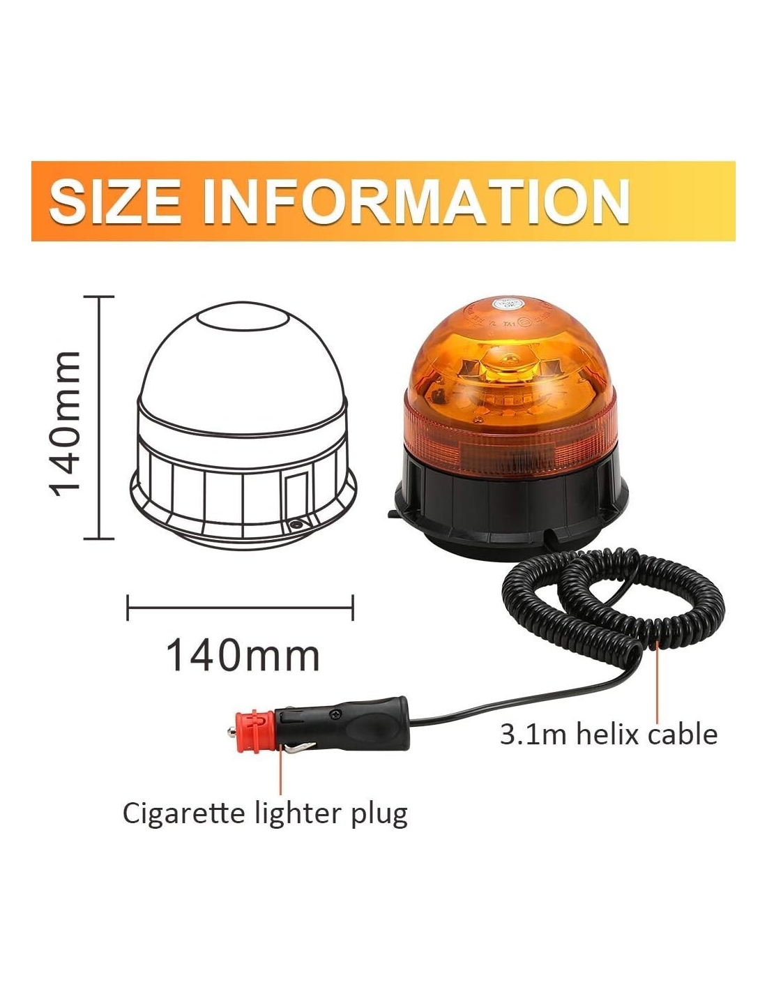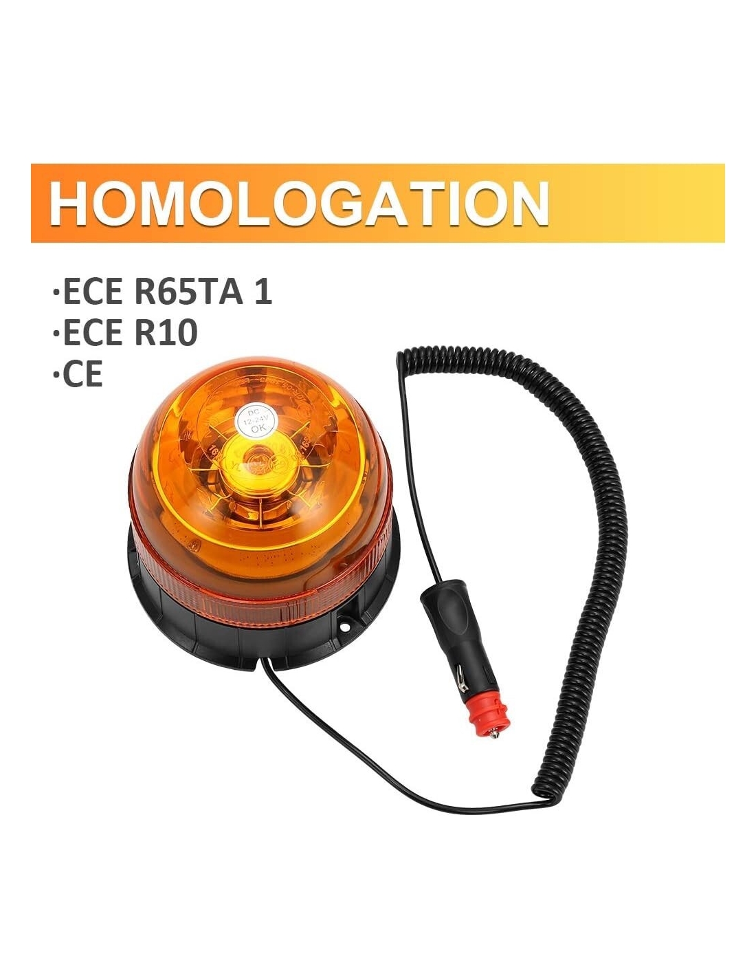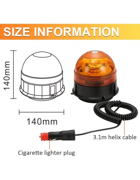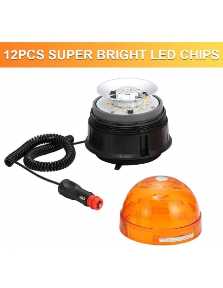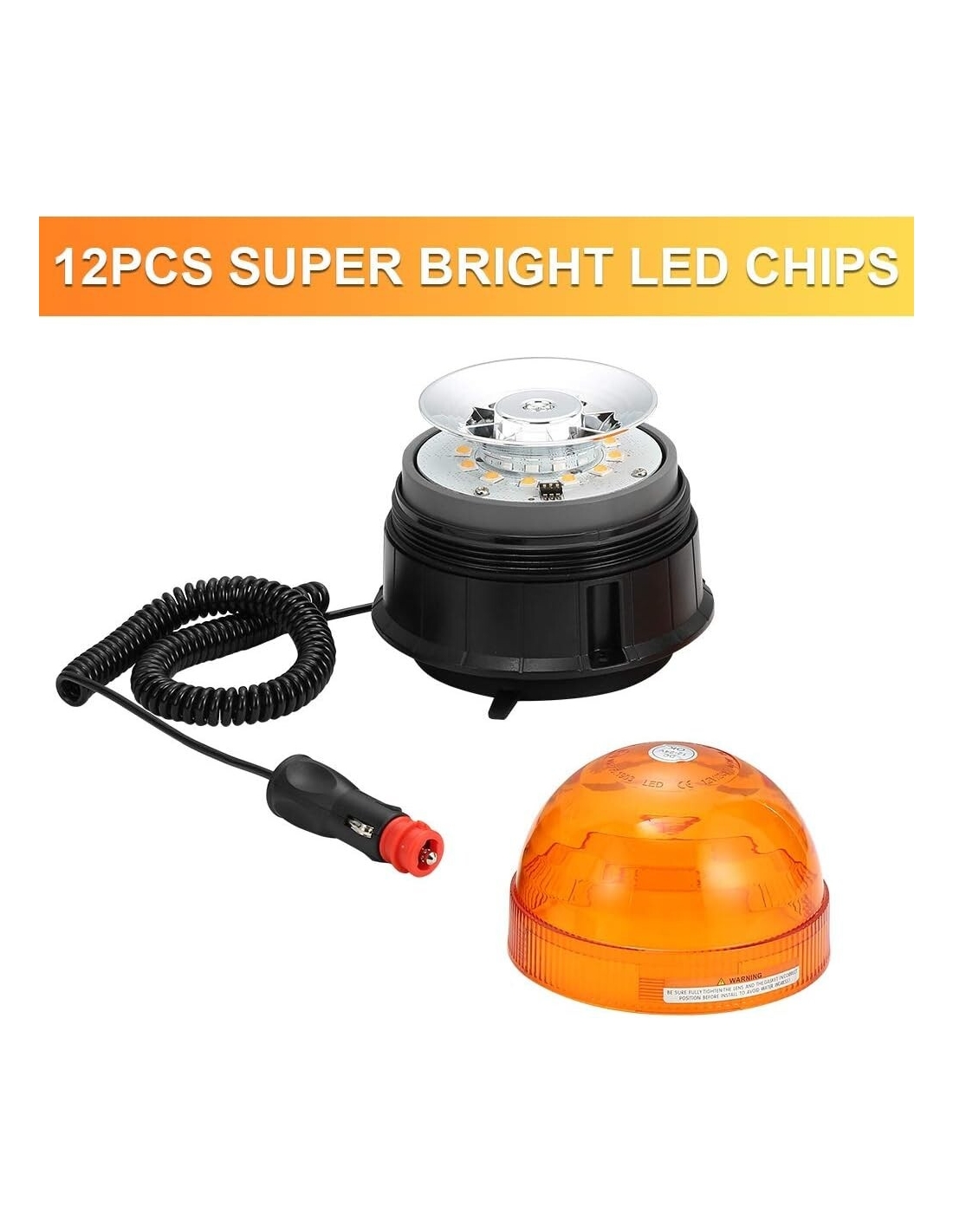INFORMAZIONI SUL PRODOTTO - 12PCS Chip LED ad alta intensità super luminosi; con cavo elicoidale di 3,1 m di lunghezza operativa e presa accendisigari; Doppia tensione 12 / 24V; campo operativo 10–30 V CC; Montaggio magnetico