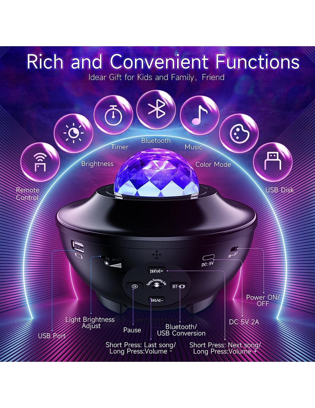 Proiettore Cielo Stellato 10 Modalità Bluetooth Musicale Telecomando Feste Bar
