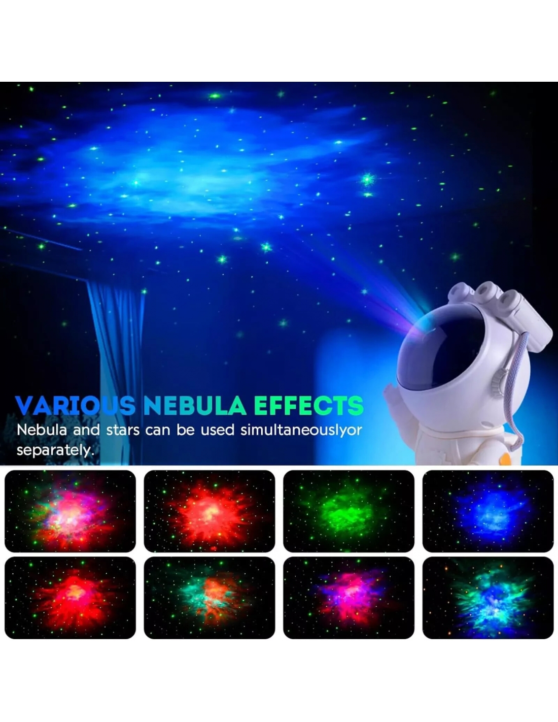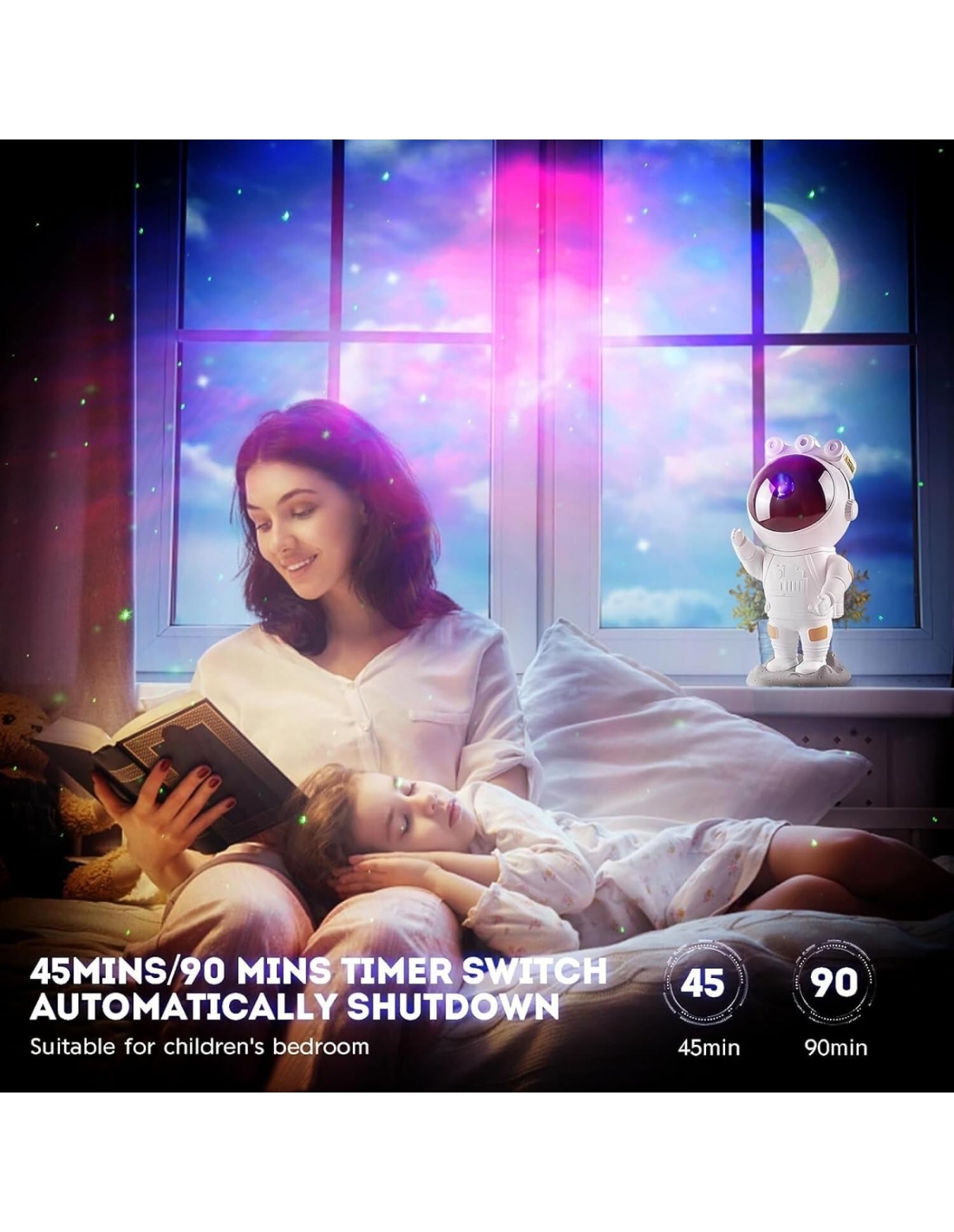 - Interruttore manuale, telecomando e timer:hai 2 modi per attivare il proiettore di luci per astronauti: i pulsanti posteriori e il telecomando. Il pulsante sul retro può accendere solo il proiettore, l'interruttore Nebula e la stella e premere a lungo per spegnerlo; Il telecomando può regolare i colori, la velocità e la luminosità della nebulosa e della stella, nonché l'interruttore del timer (45 minuti o 90 minuti si spengono automaticamente).