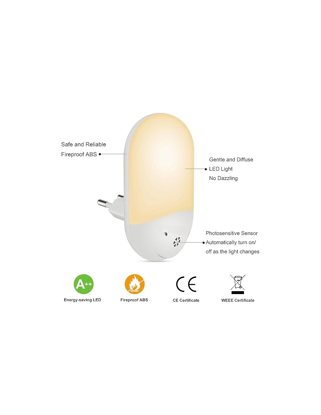 Wellead. Presa Luce Notturna con Sensore Crepuscolare, LED Luce Bianca Calda Luce Notturna per Baby, Automatico on/off Lampada a Risparmio Energetico per Bambini Camera Corridoio da Letto Scale Bagno [Classe di efficienza energetica A++]