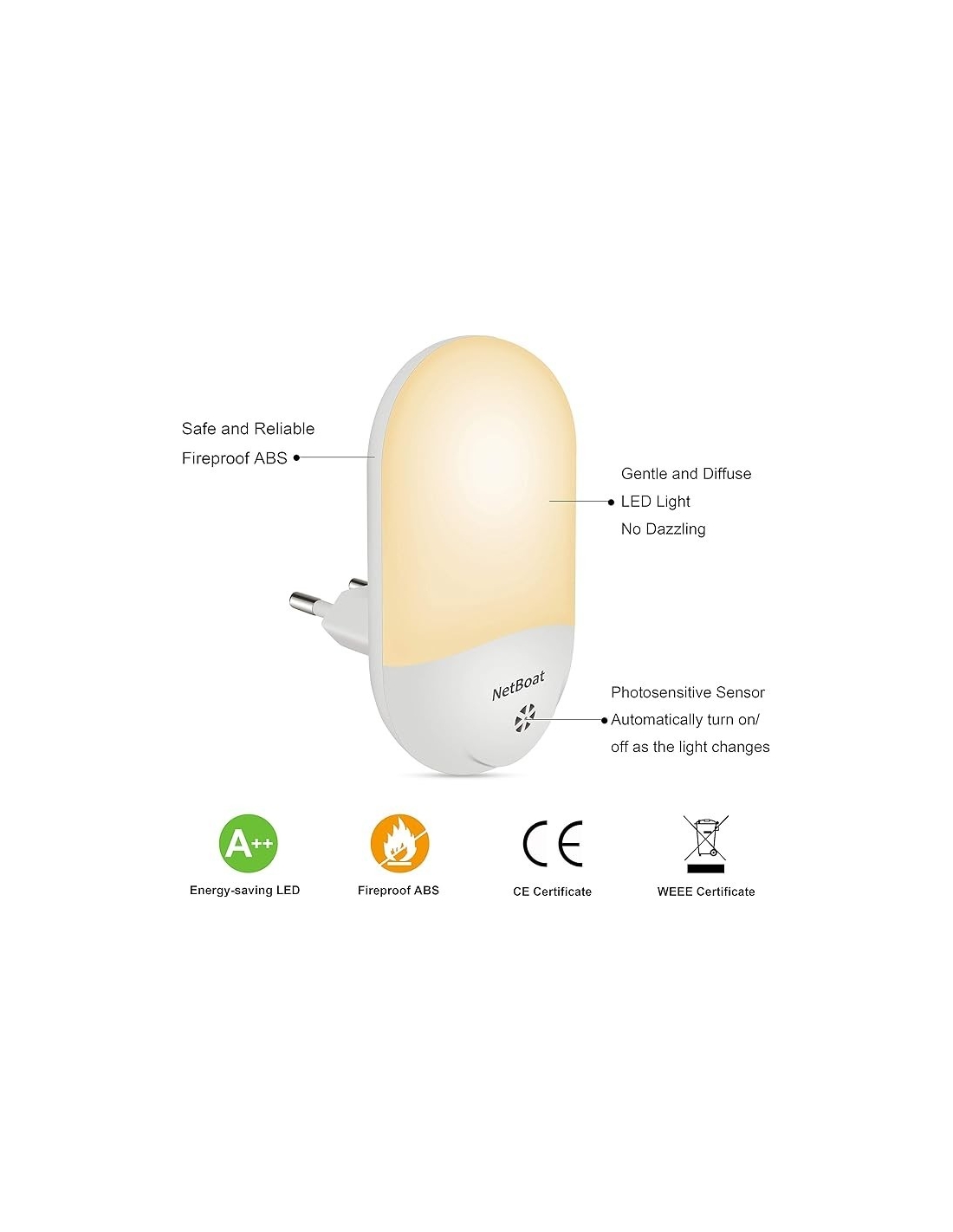 NetBoat Presa Luce Notturna con Sensore Crepuscolare, LED Luce Bianca Calda Luce
