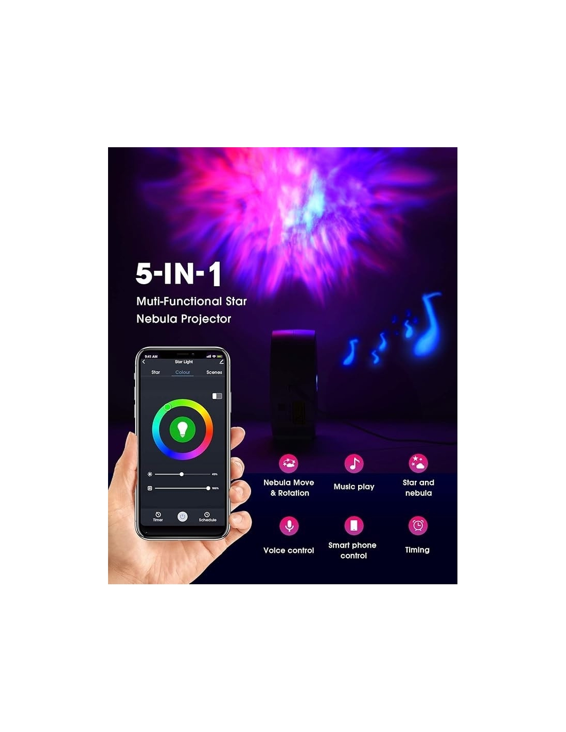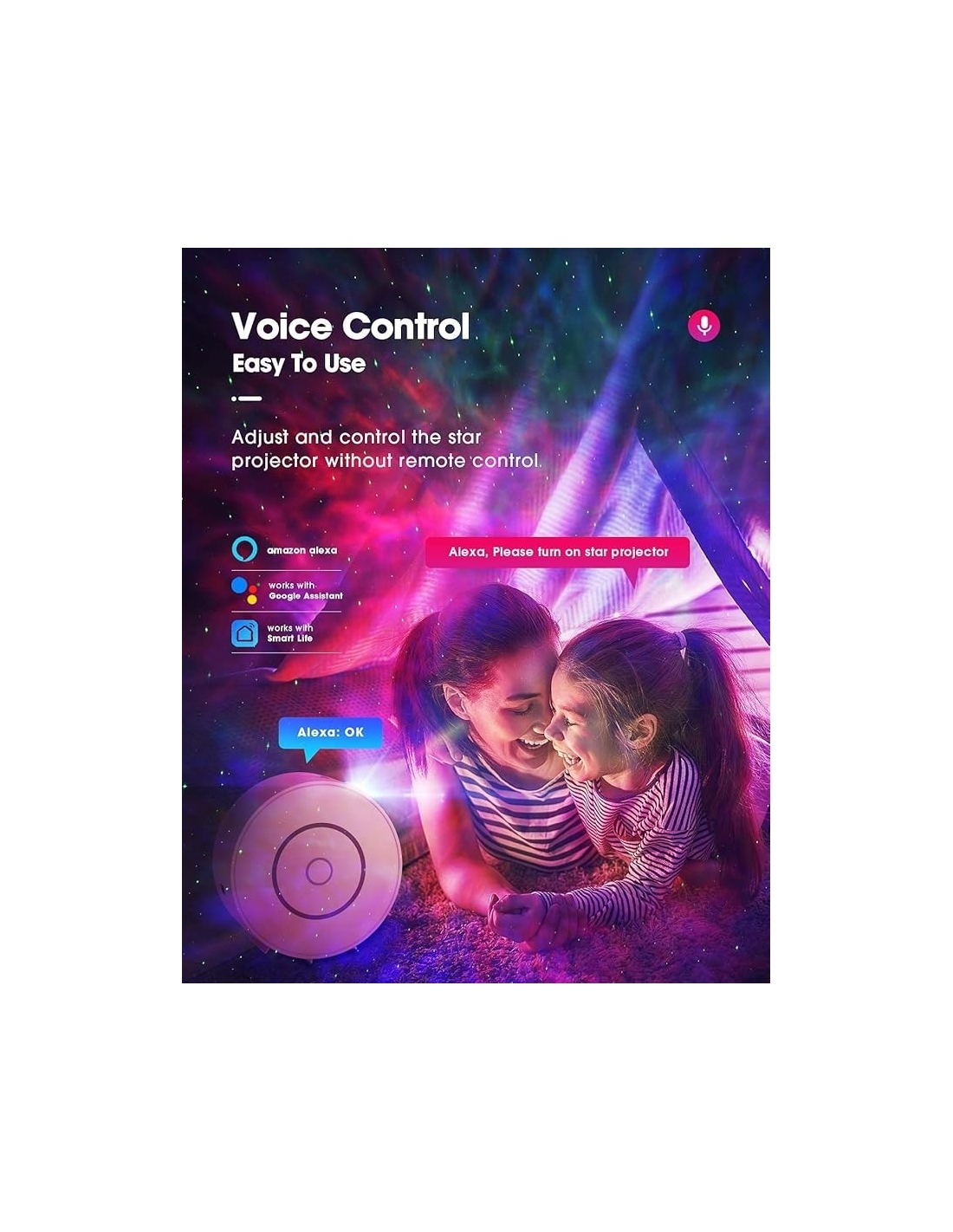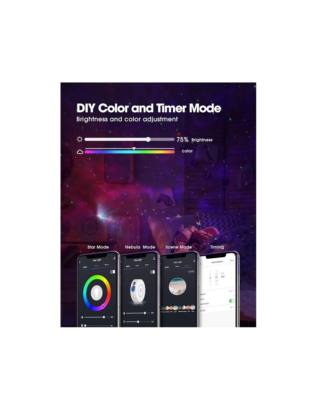 - 【Smart Life Controllo intelligente e condivisione familiare】 il proiettore a LED può essere collegato con l'applicazione Smart Life sul telefono, rispetto al telecomando è più intelligente e comodo. Accensione e spegnimento intelligenti, cambiare la luce, regolare la luminosità, riprodurre musica e soddisfare le vostre esigenze di controllo intelligente. E può condividere l'attrezzatura con la famiglia.