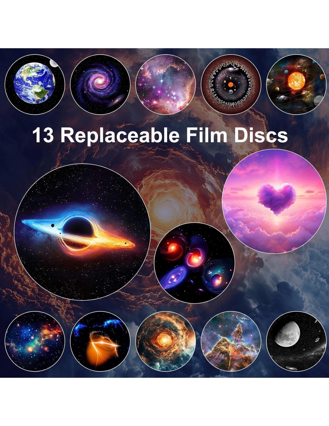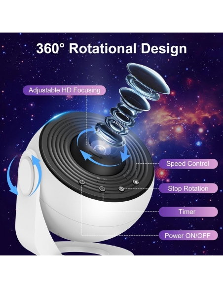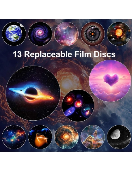- Planetario su misura a casa: la luce della galassia ruota con un asse centrale del motore silenzioso da 30 dB, simulando la rotazione delle tracce delle stelle, e puoi regolare la rotazione su lenta/veloce/stop con il pulsante. Ogni disco mostra una diversa meraviglia astronomica, consentendoti di personalizzare la tua avventura di osservazione delle stelle tramite il nostro proiettore di luce spaziale.
