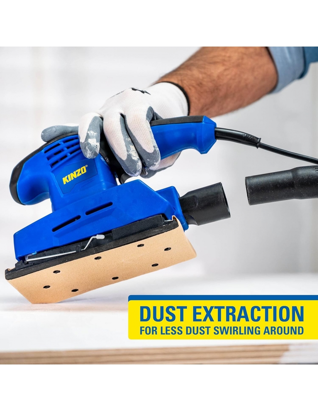 - LAVORAZIONE DEL LEGNO: gli appassionati di lavorazione del legno sono a loro spese con la smerigliatrice Kinzo La levigatrice per extension è perfetta per la lavorazione di porte in legno, tavoli e altri mobili in legno.