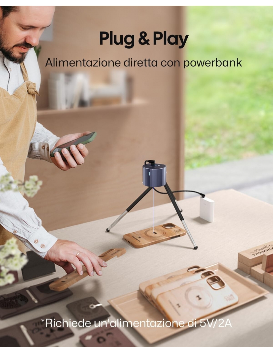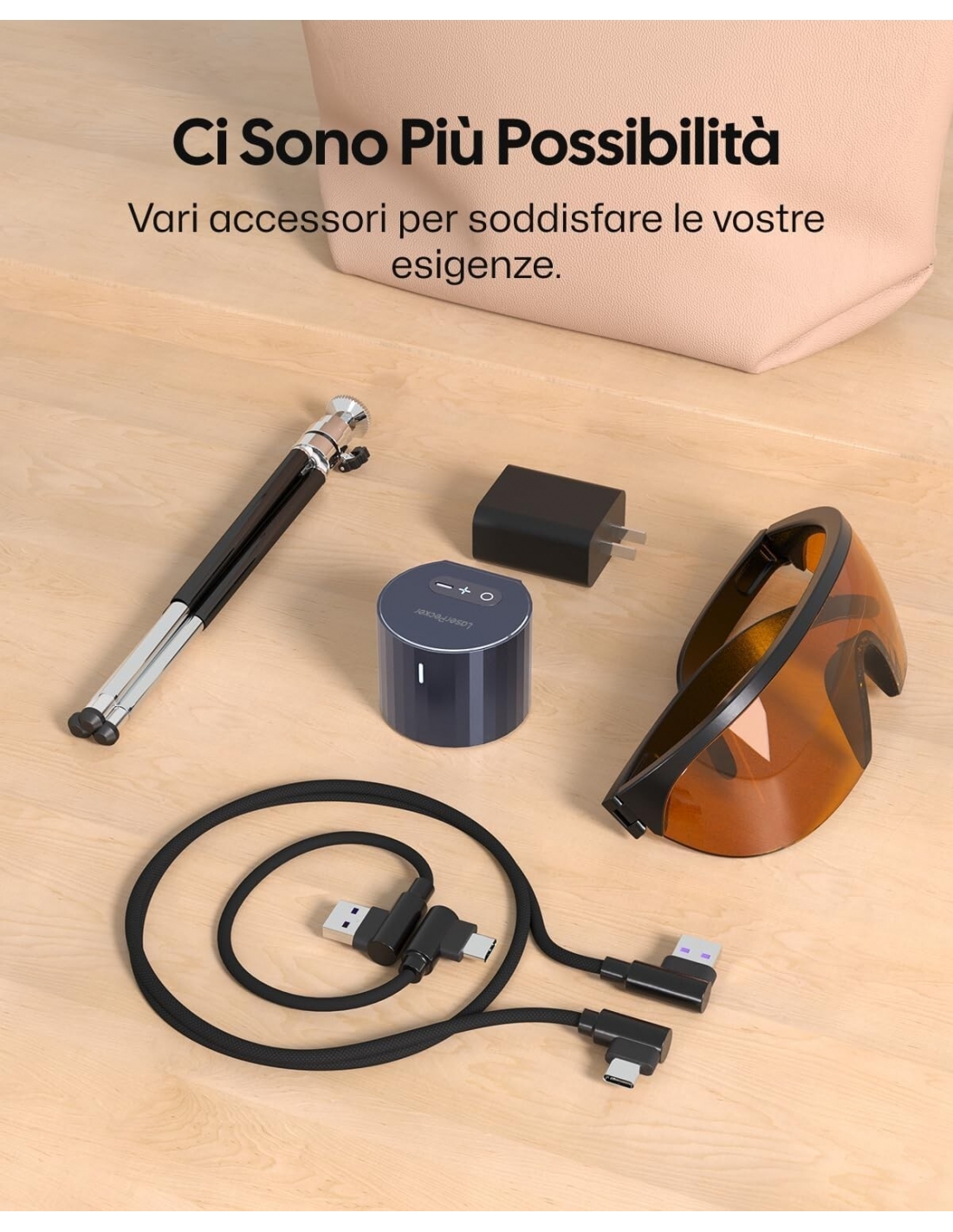 - Compatto e portatile: con un peso di soli 90 g e dimensioni di soli 6,5 x 6,1 x 5,3 cm (lunghezza x larghezza x altezza), questo piccolo dispositivo per incisione laser è ideale per l'uso nomade. Grazie al suo peso ultraleggero e alle dimensioni compatte, può essere tenuto a mano o inserito nella tasca di uno zaino. Può essere alimentato da qualsiasi fonte di alimentazione 5 V/2 A (come un alimentatore mobile) tramite USB e utilizzato in qualsiasi momento. Con la macchina per incisione laser LaserPecker LP1 Pro, puoi realizzare i tuoi progetti di incisione e divertirti sempre e ovunque.