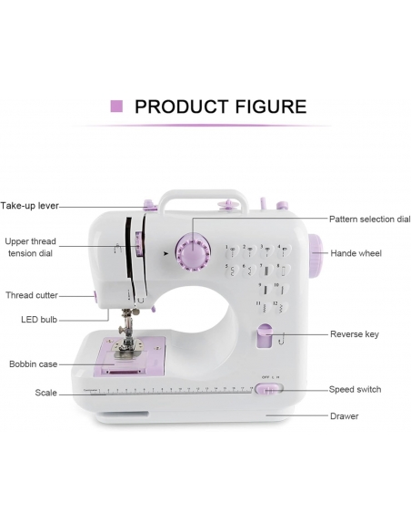 XUEJI FHSM505 Macchina da Cucire Elettrica Portatile con 12 Punti diversi