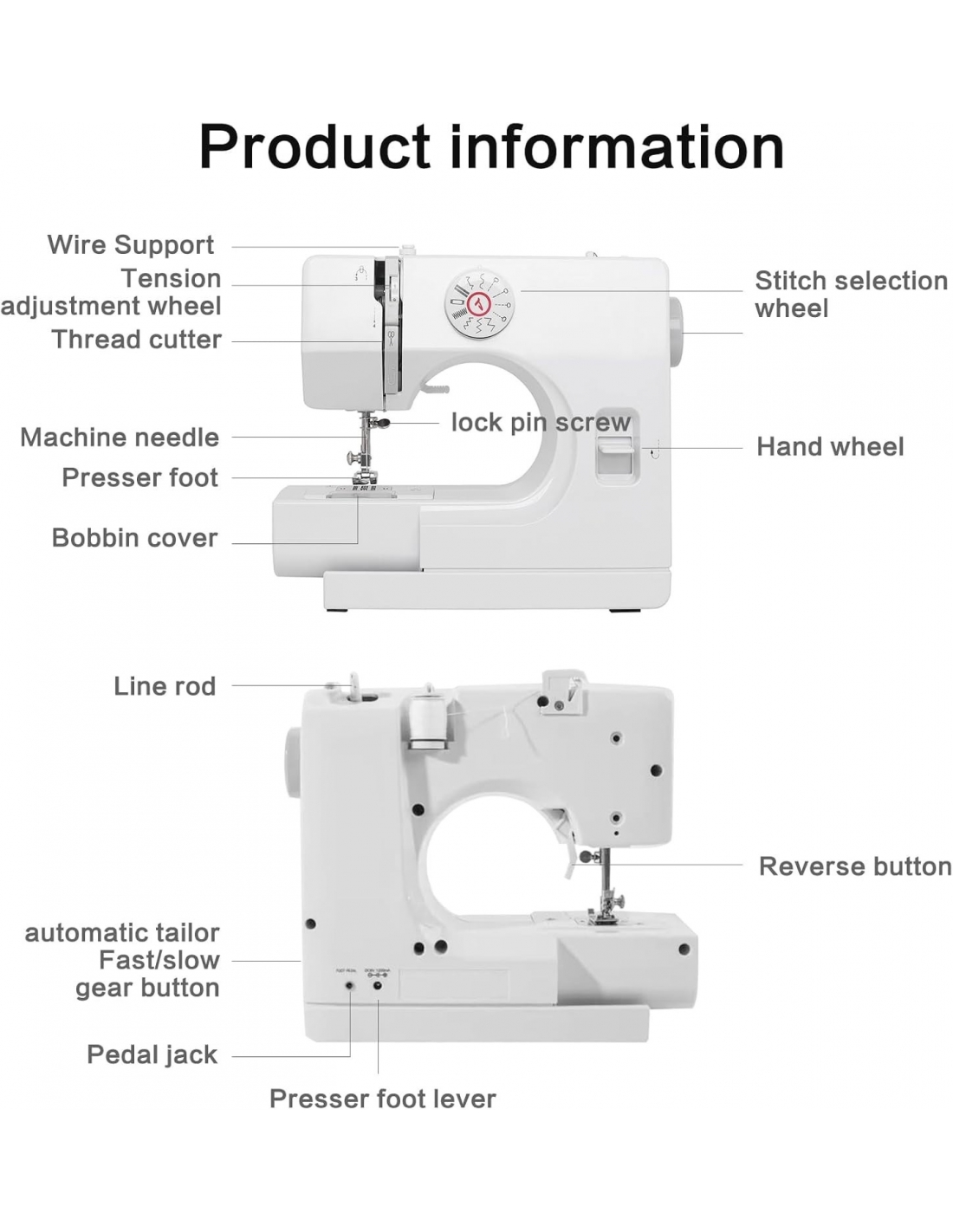 LETCART UFR-725 Macchina da cucire multifunzione 12 tipi di cucito, doppio filo, due velocità, cucito inverso, macchina da cucire portatile per principianti
