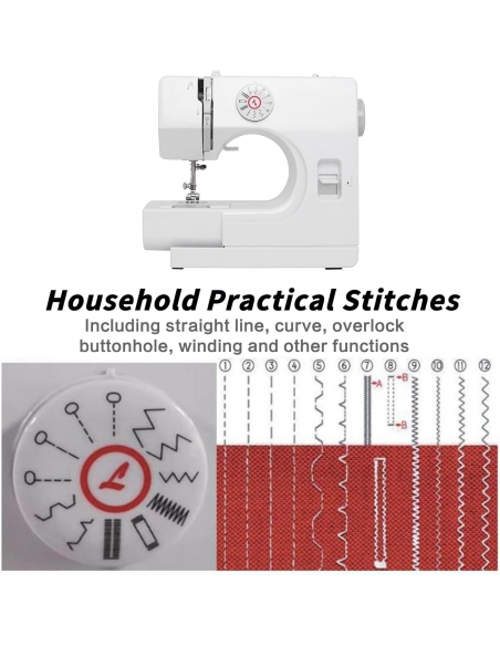 - Multifunzione: la macchina da cucire multifunzione aggiornata ha 12 tipi di fili da cucire tra cui scegliere, cucitura inversa in linea retta, piccola macchina da cucire con funzione ago cilindrico, adatta per cucire maniche e pantaloni, ecc., con funzione overlock, trimmer integrato per fili, illuminazione per una facile cucitura, facile da usare.