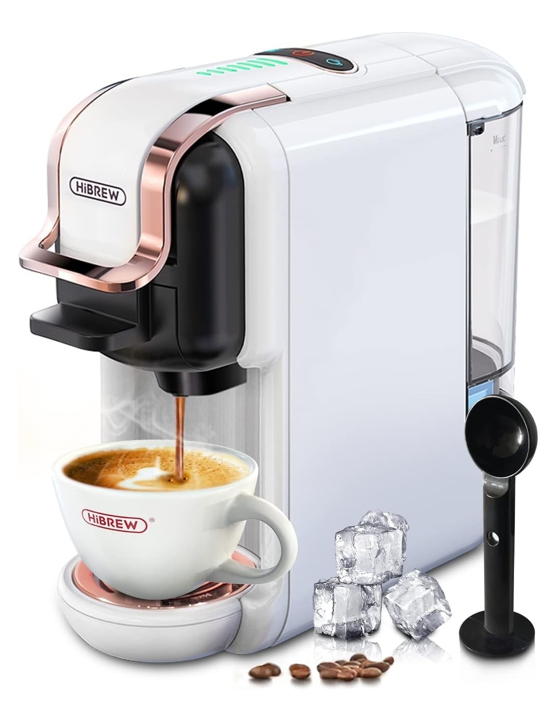 HIBREW Macchina da caffè H2B multi-capsula 5 in 1 macchina caffè espresso, compatibile con cialde DG/Nes/K-cup/ESE/caffè macinato, arresto automatico, espresso perfetto, bianco