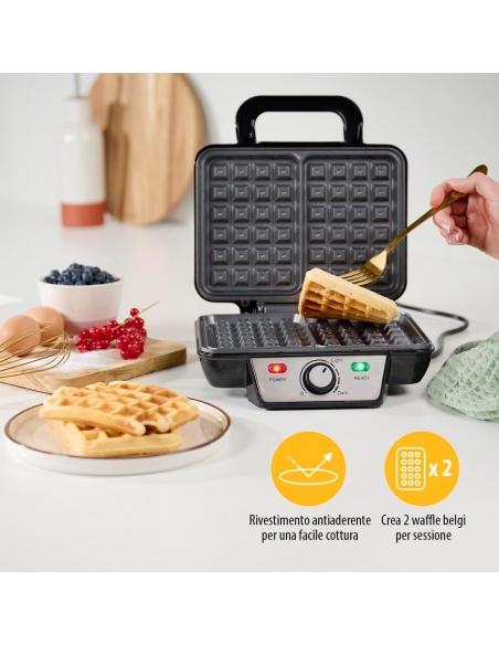- La macchina per waffle raggiunge rapidamente la temperatura desiderata grazie alla potenza di 1000 W.